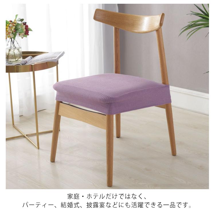 伸縮性ストレッチ素材使用で、椅子にぴったりフィットします!お部屋のインテリアにあわせて、13色からお選びいただけます。チェアカバーだけ変わると、部屋の雰囲気が一瞬変わります!上から被せるだけで、生地が伸縮し座面にフィットしてくれます!一番汚れが付きやすい座面の保護となり、古い座面の猫の爪とぎ跡、ヒビ割れ、毛玉などを完璧で隠せます。捨てるのも惜しいご愛用のイスが真っ新なおしゃれなイスへと大変身。質感のいい素材の上、落ち着いた色合いで、部屋も明るくなれ、気分転換に変えたりできます。ダイニングチェア・デスクチェア・椅子など、背もたれのあるタイプの椅子であれば、幅広く対応できます!家庭・ホテルだけではなく、パーティー、結婚式、披露宴などにも活躍できる一品です。カバーをつけるだけで、見慣れた家具の印象がガラッと変わります。汚れたら洗濯機で洗えるので、小さいお子様やペットのいるご家庭でも安心してご使用いただけます