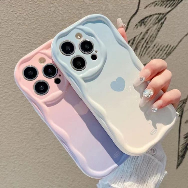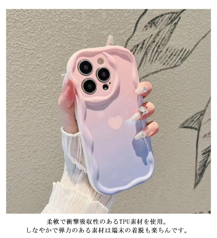 グラデーション 可愛い iPhoneケース クリア うねうね なみなみ iphone14 iphone13pro max iphone12 mini ハート柄 韓国 シリコン 耐衝撃 かわいい スマホケース ウェーブ おしゃれ SNS 大人かわいい 女子 青 ピンク