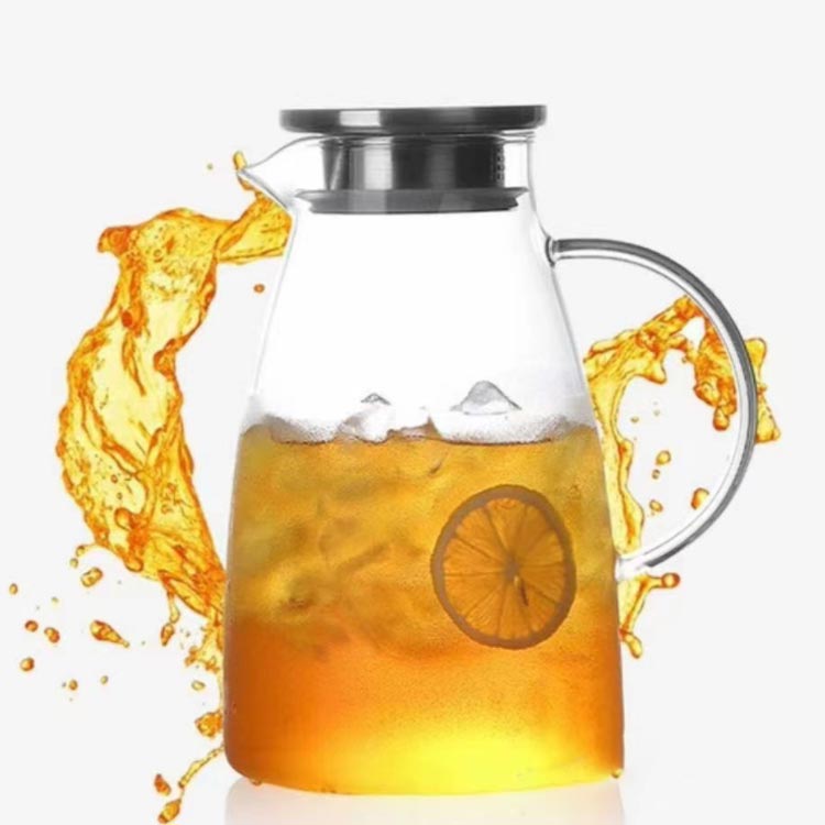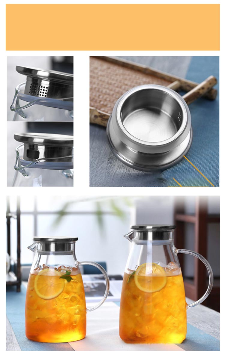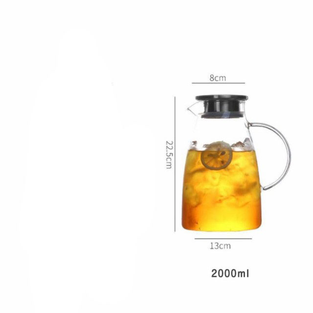 ガラスピッチャー 2000ML 直火 耐熱 ガラスポット ガラスケトル ティーポット 耐熱ガラス 大容量 直火電気ケトル対応 ホウケイ酸ガラス ステンレス茶こし一体型蓋 洗いやすい 冷水筒 冷水ポット 麦茶入れ 水だし 紅茶ポット