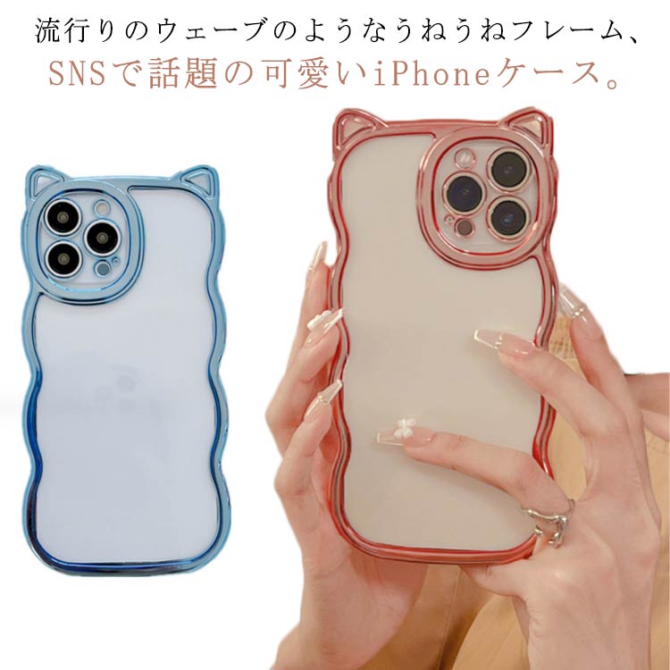 iPhone15ケース iPhoneケース 可愛い なみなみ うねうね 猫耳 ケース メッキ シリコン 耐衝撃 iphone15pro max iphone14 iphone13 iPhone12 iPhone11 Pro Max ケース クリアケース クリア 透明 アイフォン15ケース おしゃれ SNS 大人かわいい 女子 送料無料