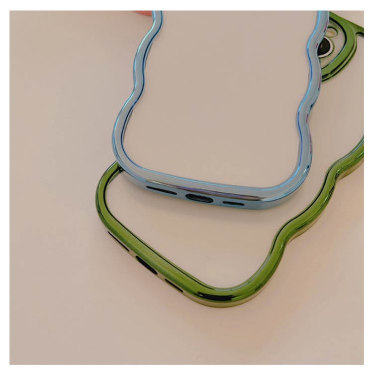 流行りのウェーブのようなうねうねフレーム、SNSで話題の可愛いiPhoneケース。メッキ加工とラインストーンを施した上品な輝きを放つ高級感が持ち!透明性の高さと耐衝撃性を兼備!電源、音量ボタンは押しやすい仕様になっている為、爪が短くても簡単に押すことができます。