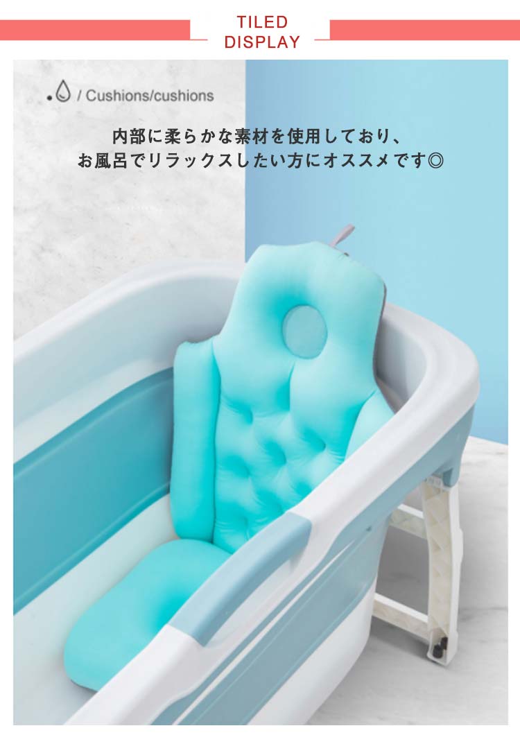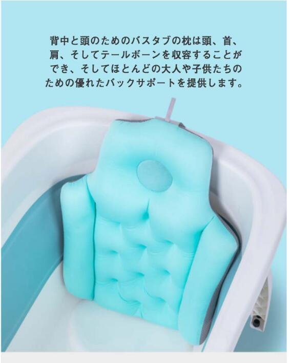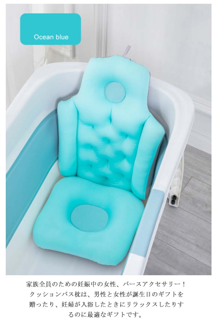 浴槽用 バスクッション 全身型 お風呂 バスタブ枕付き バスピロー 座布団 バスタブ クッション お風呂クッション 枕 まくら 首枕 頭 背中 お尻 長風呂 肩こり リラックスグッズ 安全 介護用 浴室 洗い場 滑り止め バス用品 取付簡単 水洗い