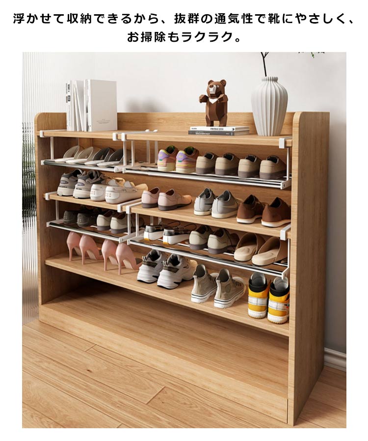 浮かせる伸縮シューズラック シューズボックス 靴入れ 靴棚 玄関 靴収納 靴ラック 伸縮式 シューズラック 玄関収納 浮かせる収納 省スペース 引っ掛け式 吊り下げ 下駄箱 靴箱 シューズクローク 棚 スリム コンパクト 棚下 サンダル スニーカー 収納ラック おしゃれ 北欧