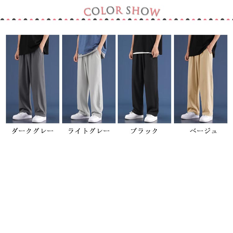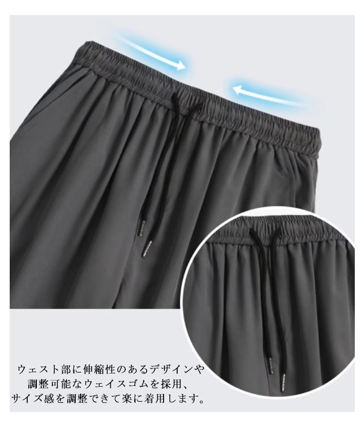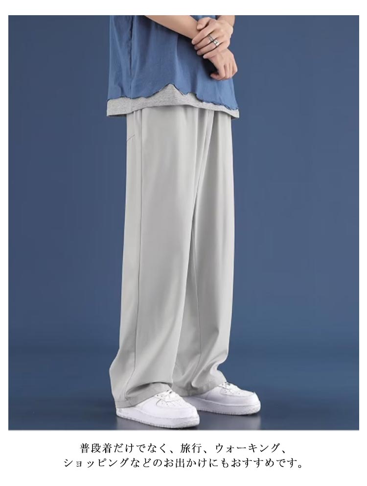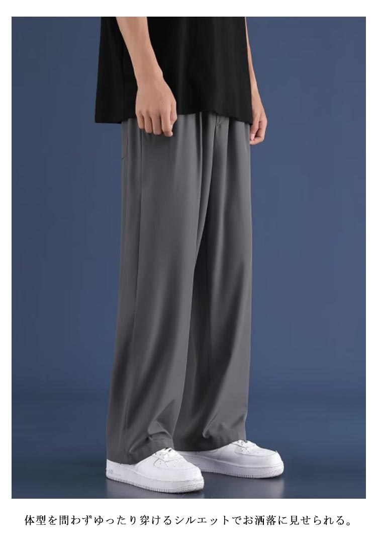 冷感サラサラ ワイドパンツ メンズ 接触冷感 速乾 ダンス ストレッチパンツ ボトムス 大きいサイズ アイスシルク ズボン アイスシルクパンツ アイスシルクロングパンツ メンズ 送料無料