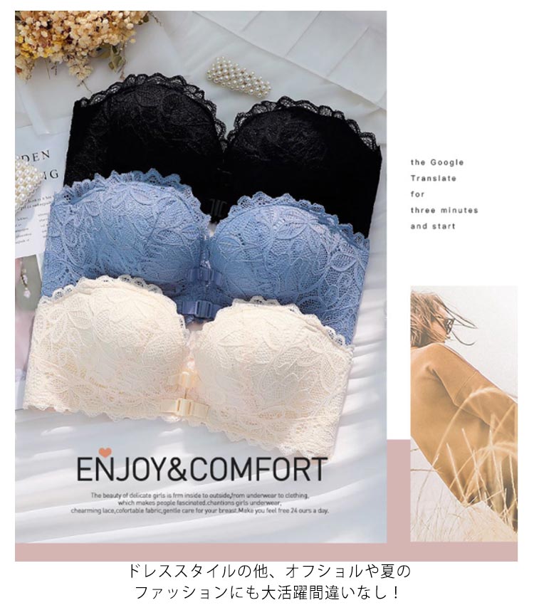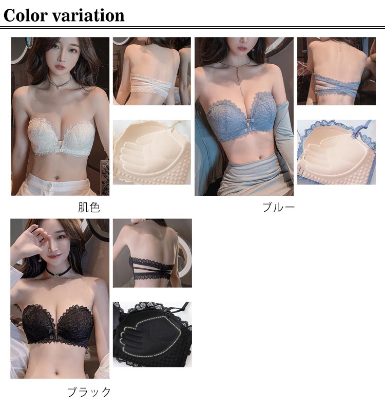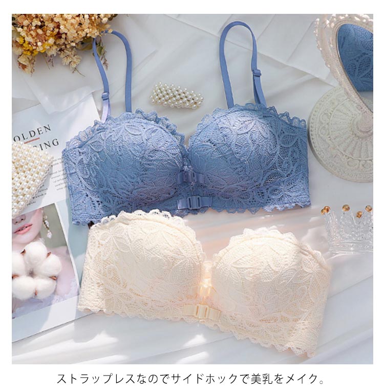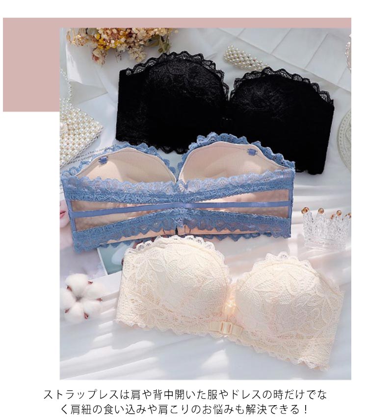送料無料 ストラップレスブラ ずれない 落ちない 総レース チューブトップ ノンワイヤー ブラジャー 谷間 バストアップ フロントホック付き 盛れる ストラップレス 肩紐なし ストラップレスインナー ブラ ベアトップ オフショルダー用ブラジャー 育乳 乳脇肉