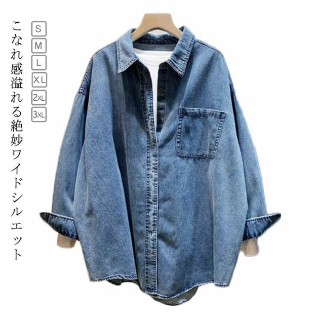 デニムジャケット レディース 長袖 デニムシャツ トップス ジャケット シャツ デニム ドルマン 羽織り ゆったり ワイド モード メンズライク オーバーサイズ ビッグシルエット 大きいサイズ 春 秋 冬 お洒落 カジュアル かわいい かっこいい
