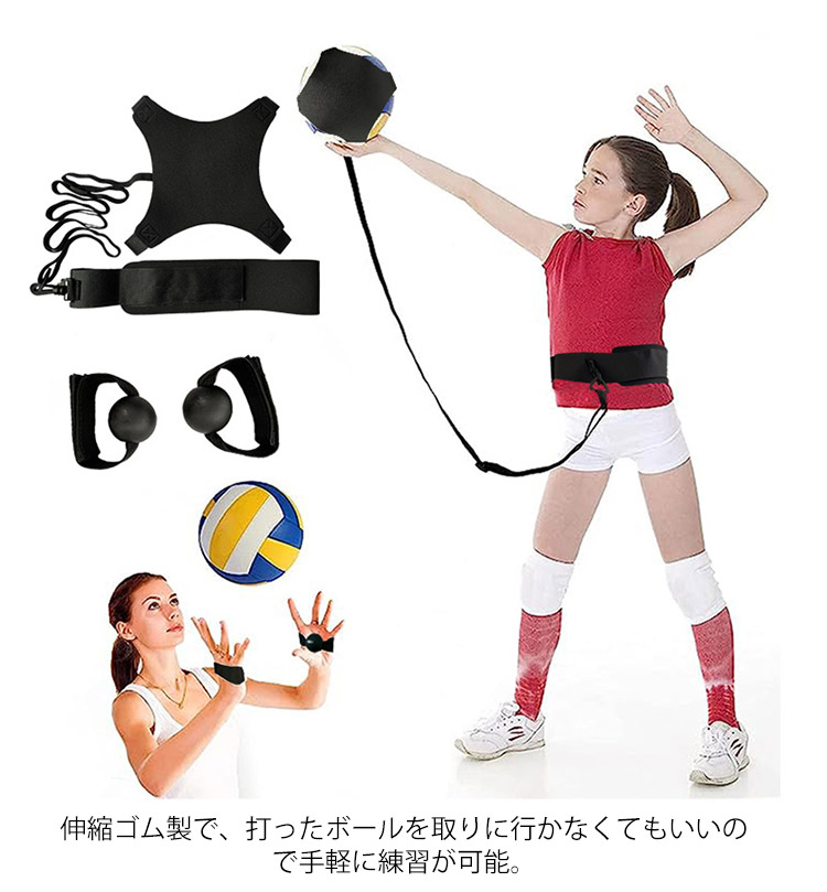 | ?自主練にピッタリ! ?サーブ、トス、レシーブ、スパイク練習が一人でできる。 ?伸縮ゴム製で、打ったボールを取りに行かなくてもいいので手軽に練習が可能。 ?ボールホルダー、ストラップ、ウエストベルトの3部構成。 ?腰に巻いて面ファスナーで固定。ロープの長さ調節可。 ?部活動や試合前のウォーミングアップ等にもご利用いただけます。 | |