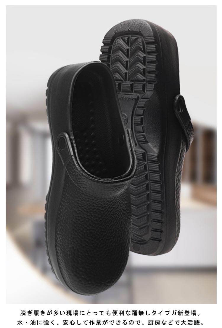 | 脱ぎ履きが多い現場にとっても便利な踵無しタイプガ新登場。 水?油に強く、安心して作業ができるので、厨房などで大活躍。 厚みのあるアッパーが、調理器具の落下などから足を守ります。 調整可能なストラップデザインで、スリッパとサンダルは簡単に切り替えることができます。 防水性と軽量性があり、快適な一日を演出します。 幅広い職場や用途に対応できるのが魅力。 | |