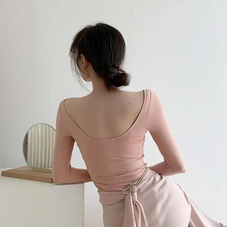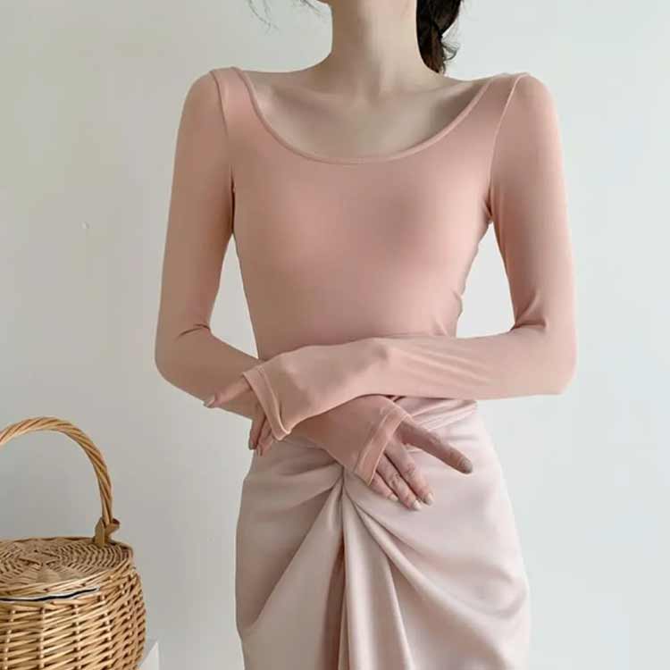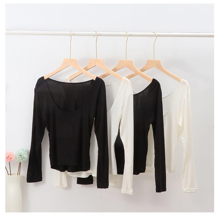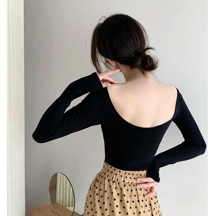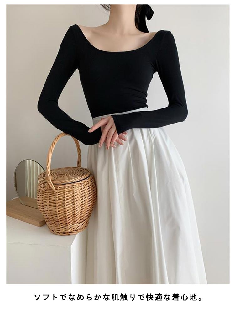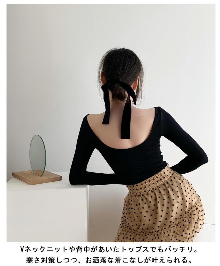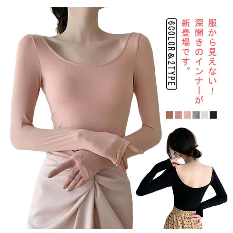 インナー 深開き あったか バレエネック バックオープン 肩開き 背中あき 襟ぐり広め 服から見えない 無地 シンプル 薄手 肌着 長袖 防寒 トップス チラ見え防止 お洒落 送料無料