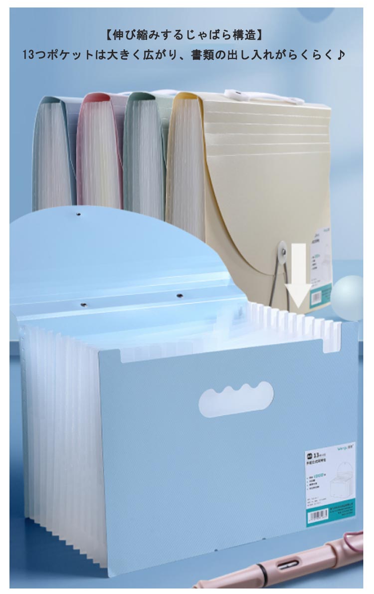 a4 サイズ 書類 収納 ファイル 伸縮 じゃばら式 自立 13ポケット ネームラベル付 薄型 密閉式 防水 持ち運び可能 整理 書類ケース ファイル収納 ドキュメント ファイル ファイル 伝票 ファイル 書類収納ボックス