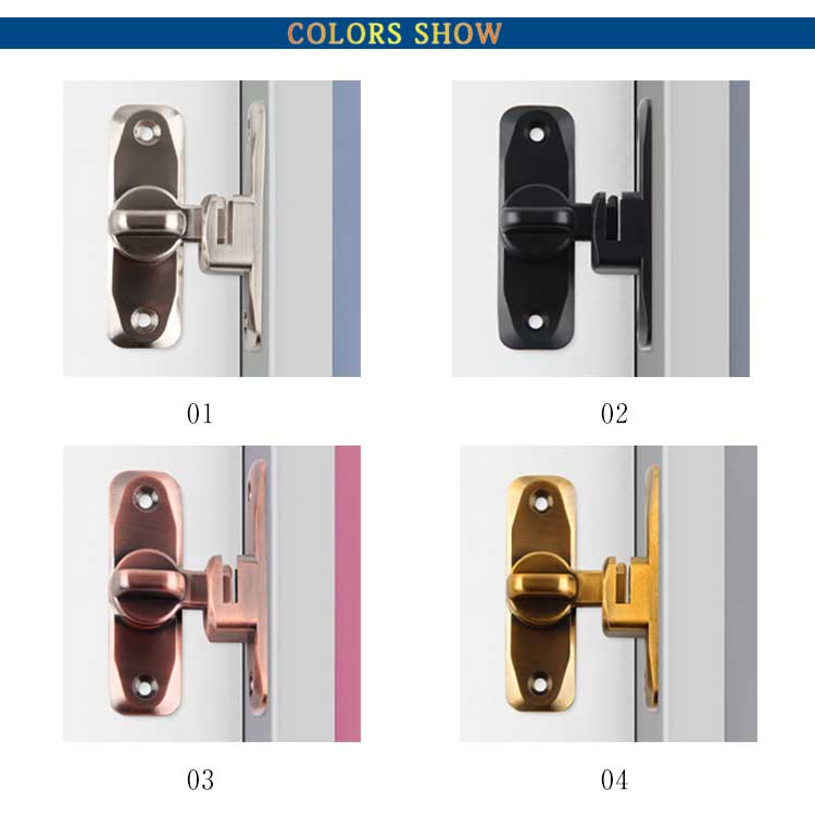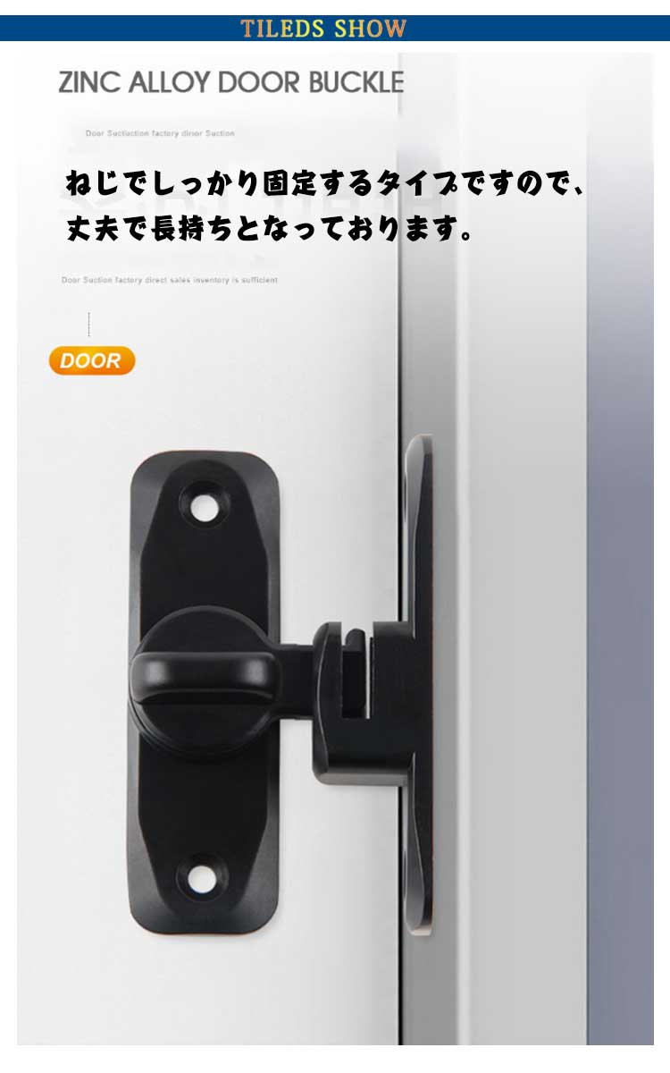 選べる全7色!引き戸 鍵 後付け ドアロック 90度/180度 取り付け簡単 穴あけ不要 ドアバックル 亜鉛合金 ドア留め金ロック 後付け 回転式 フリップラッチロック スライディングドア 引き戸 鍵 ロック 耐震ラッチ 防犯 部屋 窓 玄関用