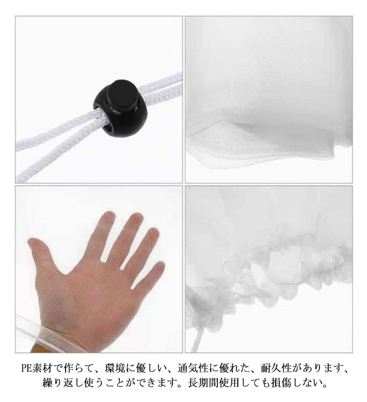 メッシュ式に作成されており、通気性や耐久性に優れています。耐熱、耐寒、低熱吸収性があって、低直射日光強度という優れた特性を備えて、繰り返し使うことができてます。PE素材で作らて、環境に優しい、通気性に優れた、耐久性があります、繰り返し使うことができます。長期間使用しても損傷しない。果樹栽培には必須!鳥、ウサギ、その他の虫による噛み付きから植物を保護します。恐ろしい天気から大切な花木を守ります。透気生地は植物が窒息しているか、あるいは光合成を妨げることはありません。 花、野菜、観葉植物や鉢植えなどの植物に覆い。ファスナー付きタイプなので、樹木に被せてファスナーを締めるだけの簡単取付け。広い開口部により、花や木に直接覆って、プラントの高さや大きさに合わせて自由に保護カバーを調整することができます。