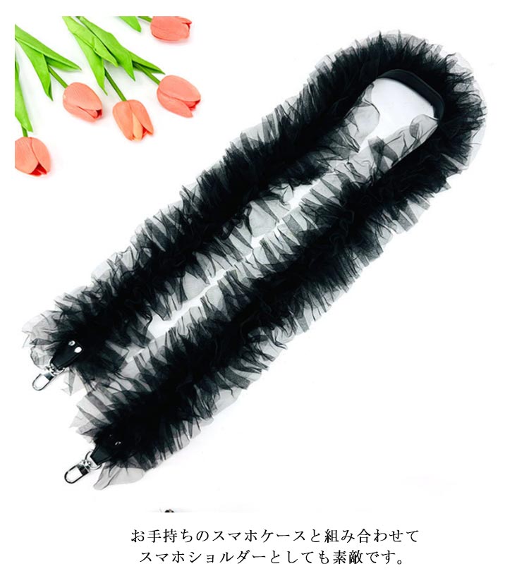 スマホショルダー チュール スマホショルダーストラップ フリル 肩掛け 斜めがけ ファッション雑貨 小物 オーガンジー調 ボリューム ショルダー 携帯 ストラップ ギャザー ショルダーストラップ 紐 チュールフリルストラップ
