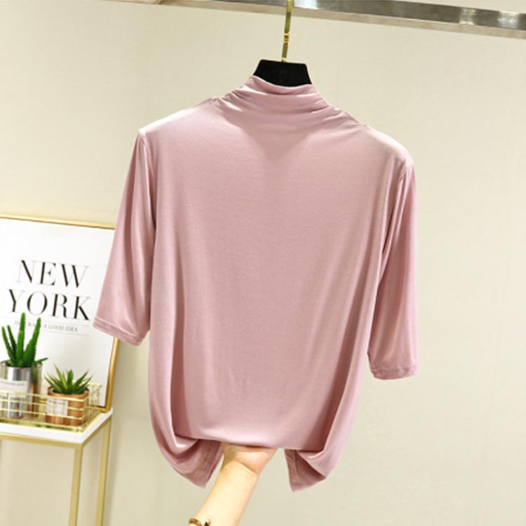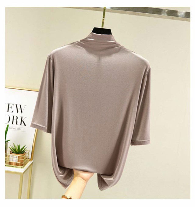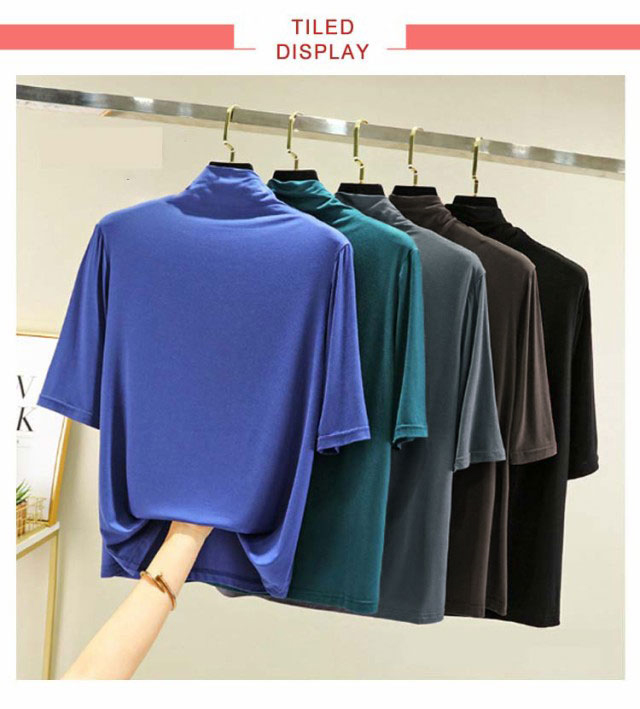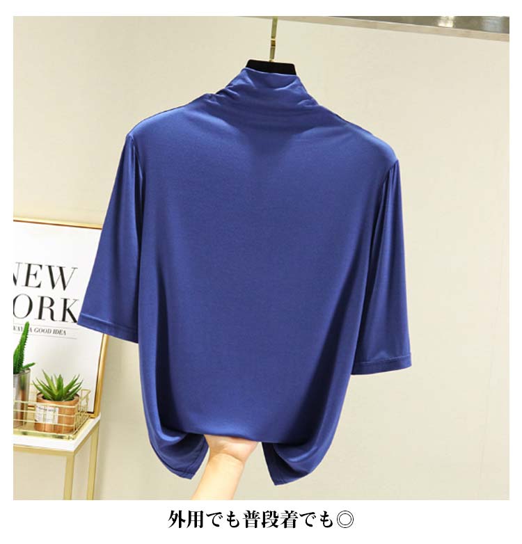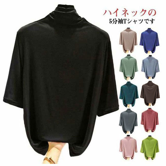 | ハイネックの5分袖Tシャツです。 シンプルなので、着回し力もバツグン? 外用でも普段着でも◎ 色違いで欲しくなるカジュアルTシャツです。 | |