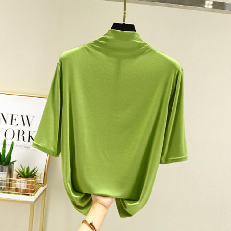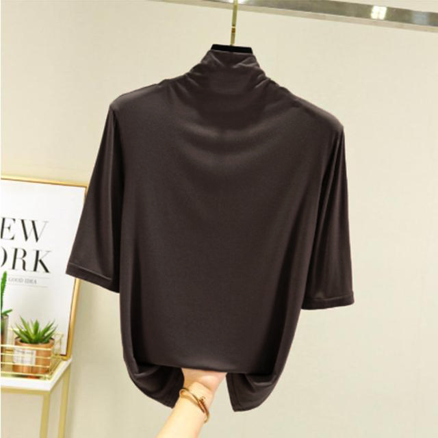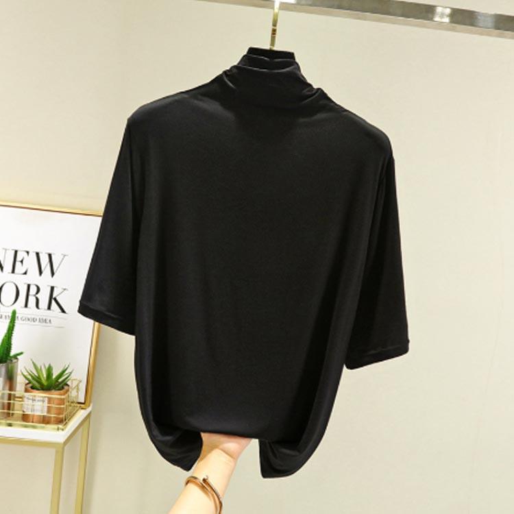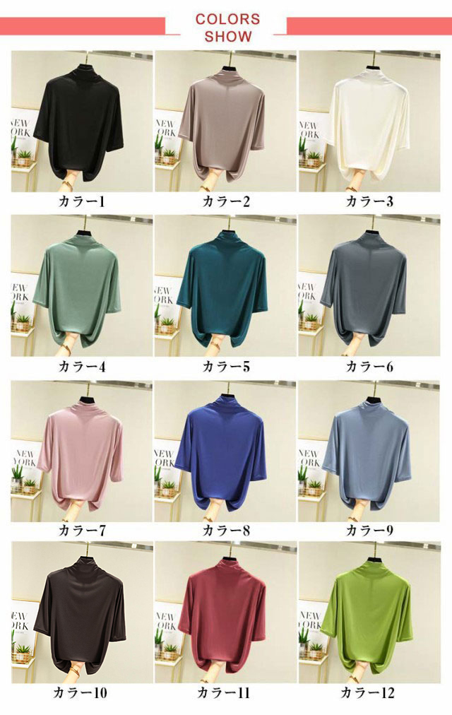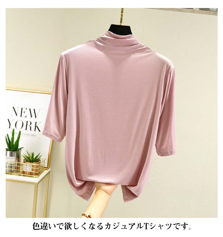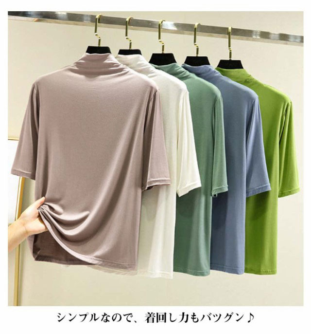 Tシャツ カットソー レディース トップス 半袖 5分袖 ハイネック ハイネックTシャツ タートルネックハイネックカットソー 無地 薄手 夏 春 シンプル カジュアル 大きいサイズ 送料無料
