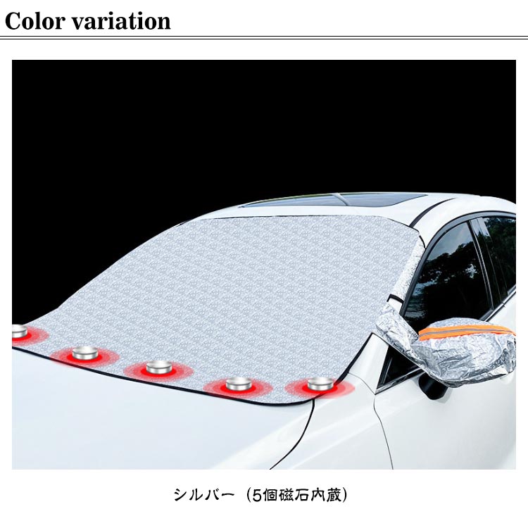 | 雨?雪?埃をシャットアウトできる車用フロントガラスカバーです。 内蔵があって、しっかり固定し、安定性が高いです。風で飛ばされることも防止できます。 多機能?四季兼用!春には防風防塵!夏には日焼け防止兼防雨、秋には落ち葉?鳥糞を避け、冬には積雪凍結防止に大活躍しています。四季兼用のフロントガラスカバーです。 夜間警告性能!蛍光ベルト付き、高視認性、夜間に駐車した場合でも車を保護できます。 | |