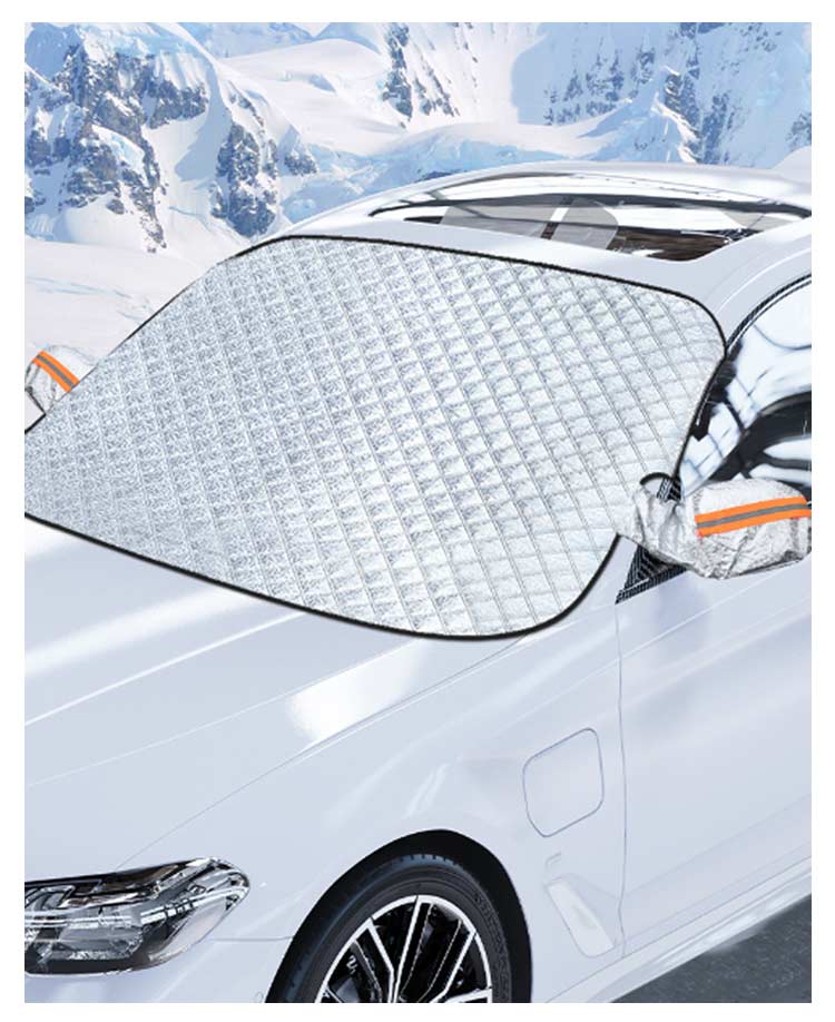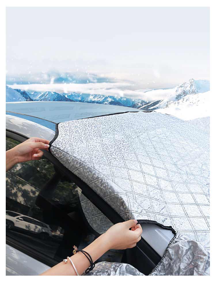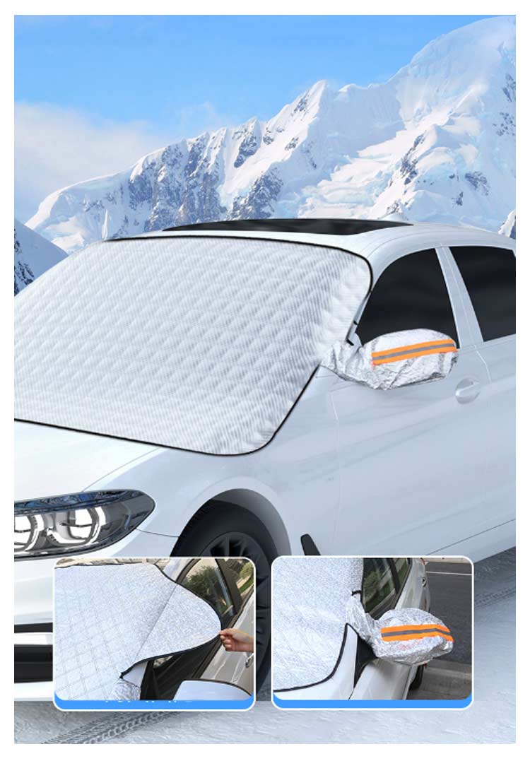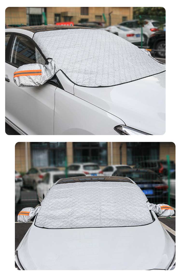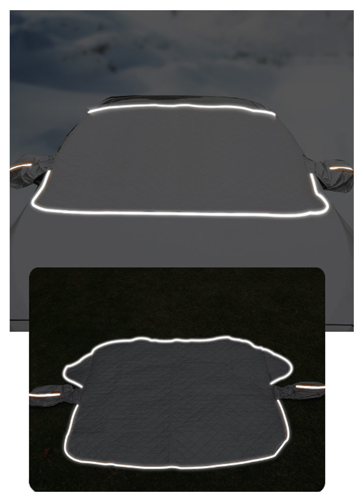 雨・雪・埃をシャットアウトできる車用フロントガラスカバーです。内蔵があって、しっかり固定し、安定性が高いです。風で飛ばされることも防止できます。多機能・四季兼用!春には防風防塵!夏には日焼け防止兼防雨、秋には落ち葉・鳥糞を避け、冬には積雪凍結防止に大活躍しています。四季兼用のフロントガラスカバーです。夜間警告性能!蛍光ベルト付き、高視認性、夜間に駐車した場合でも車を保護できます。