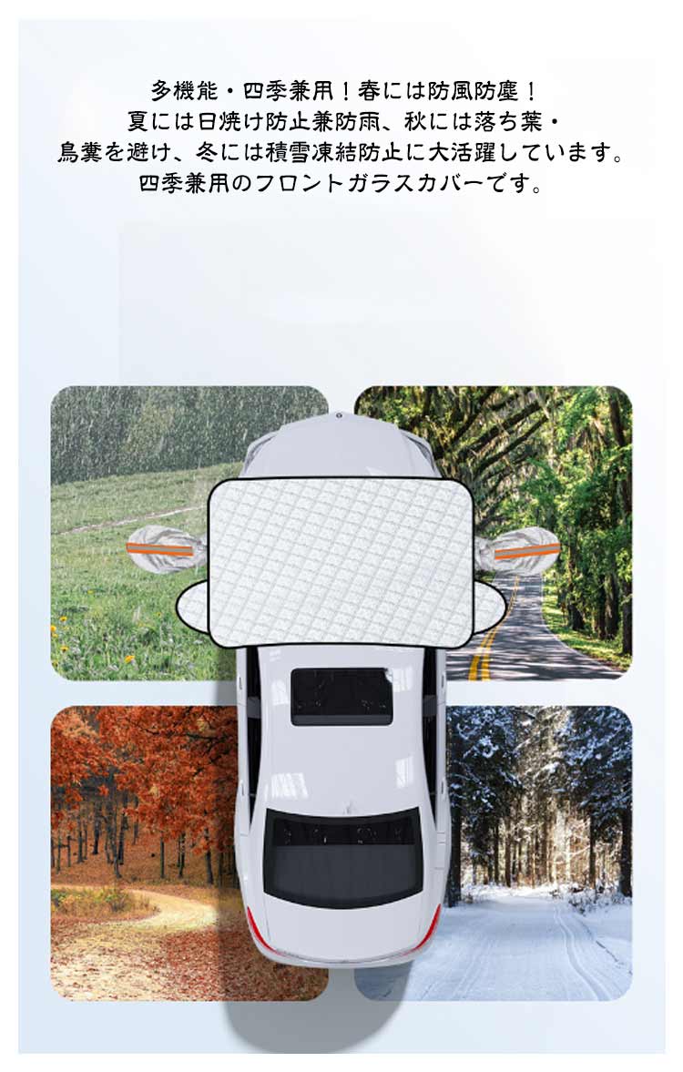 フロントカバー 凍結防止 カーフロントカバー 車用凍結防止カバー 車用 フロントガラス用カバー 車種汎用 車保護シート 四季兼用 日よけ 遮光断熱 雪対策 霜取シート 防風 車用品 車サンシェード 雪カバー SUV 軽自動車 冬 夏