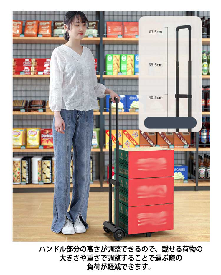 折りたたみ式 キャリーカート コンパクト 軽量 台車 ハンドキャリー キャリングカート 折りたたみカート キャスター付き ゴムひも 買い物 ショッピング アウトドア キャンプ 荷物運び 防災 ゴミ捨て キャリー カート