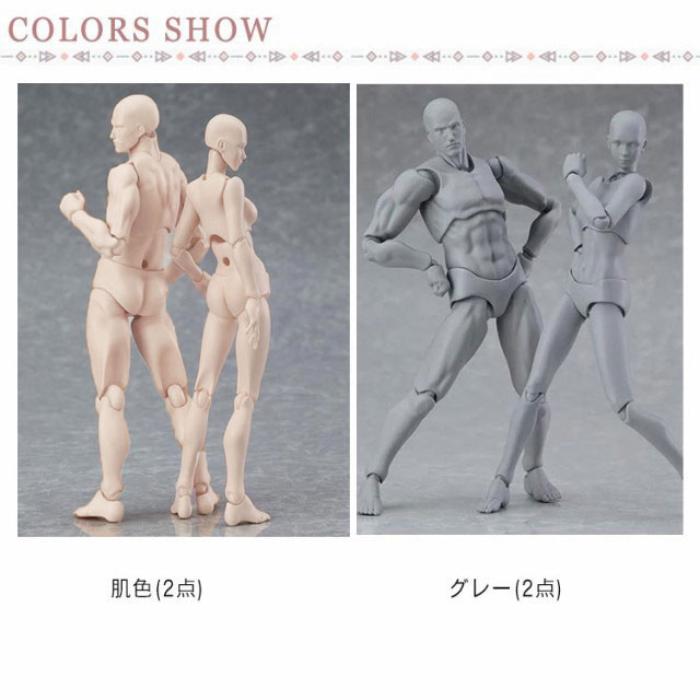 デッサン人形 男女セット モデル人形 肌色 グレー フィギュア 漫画 キャラクター イラスト 作画 練習 おすすめ 女性 男性 模型 小道具 スタンド付き 素体 2点セット ポージング人形 模型 ドールタイプ 画材