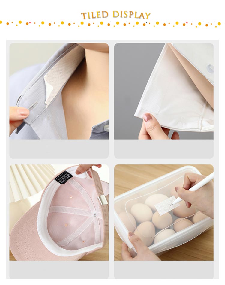 襟・袖・帽子など、衣類の汚れが気になるところへ貼るだけ! 汚れガードテープ 5個セット肌触りのよい不織布素材で汗もきちんと吸収してくれます。衣服の襟、袖、帽子の内側だけではなく、靴擦れ予防にも!洗濯前に剥がせば、ゴツゴツ洗う手間が省けます。