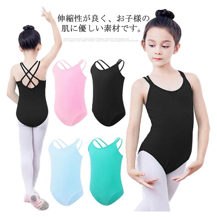 バレエ レオタード 子供 キャミソール 肩紐 ジュニア シンプル 100 110 120 130 140 150 160 170 スカートなし 黒 ブラック ピンク ストレッチ 伸縮 綿 送料無料