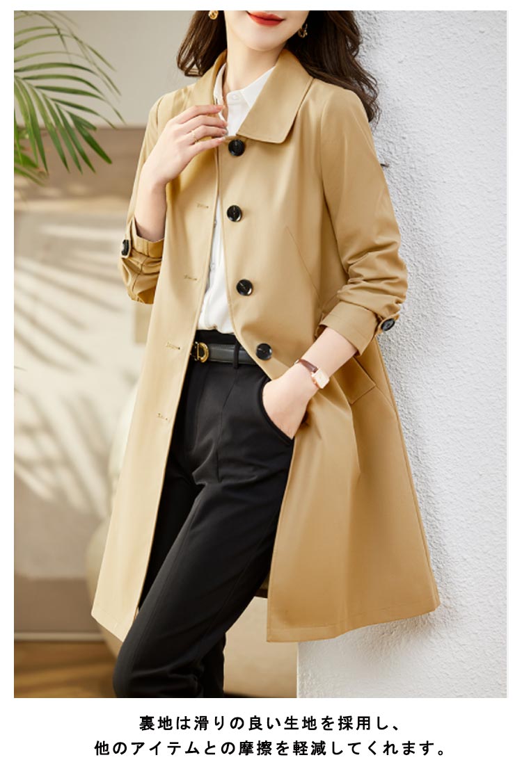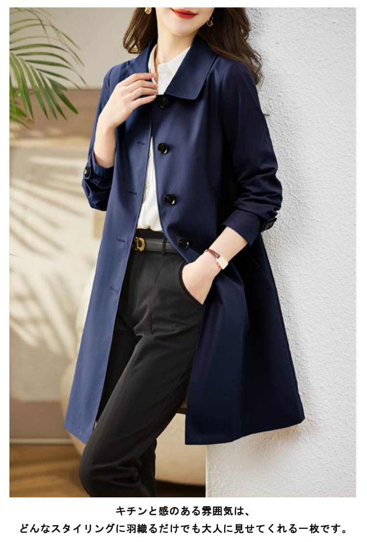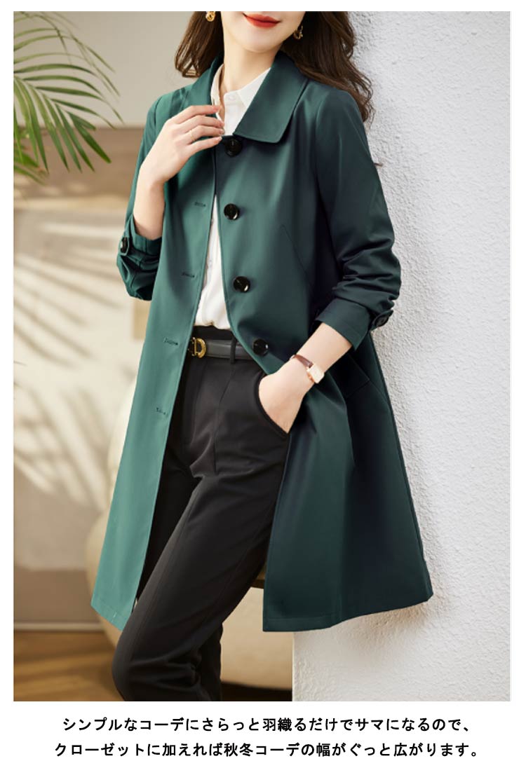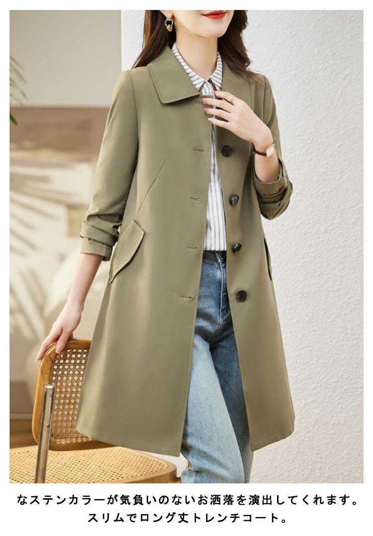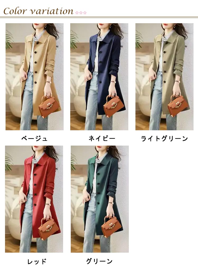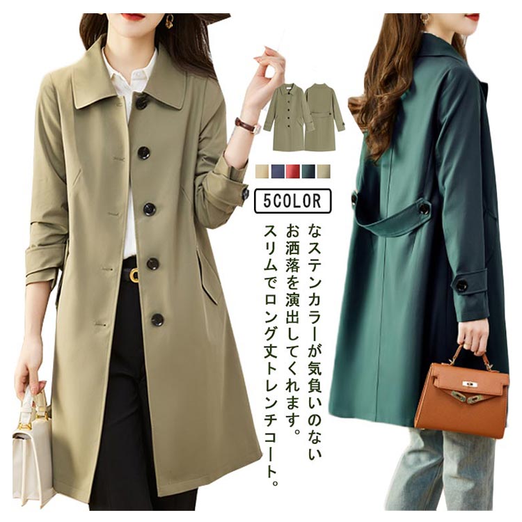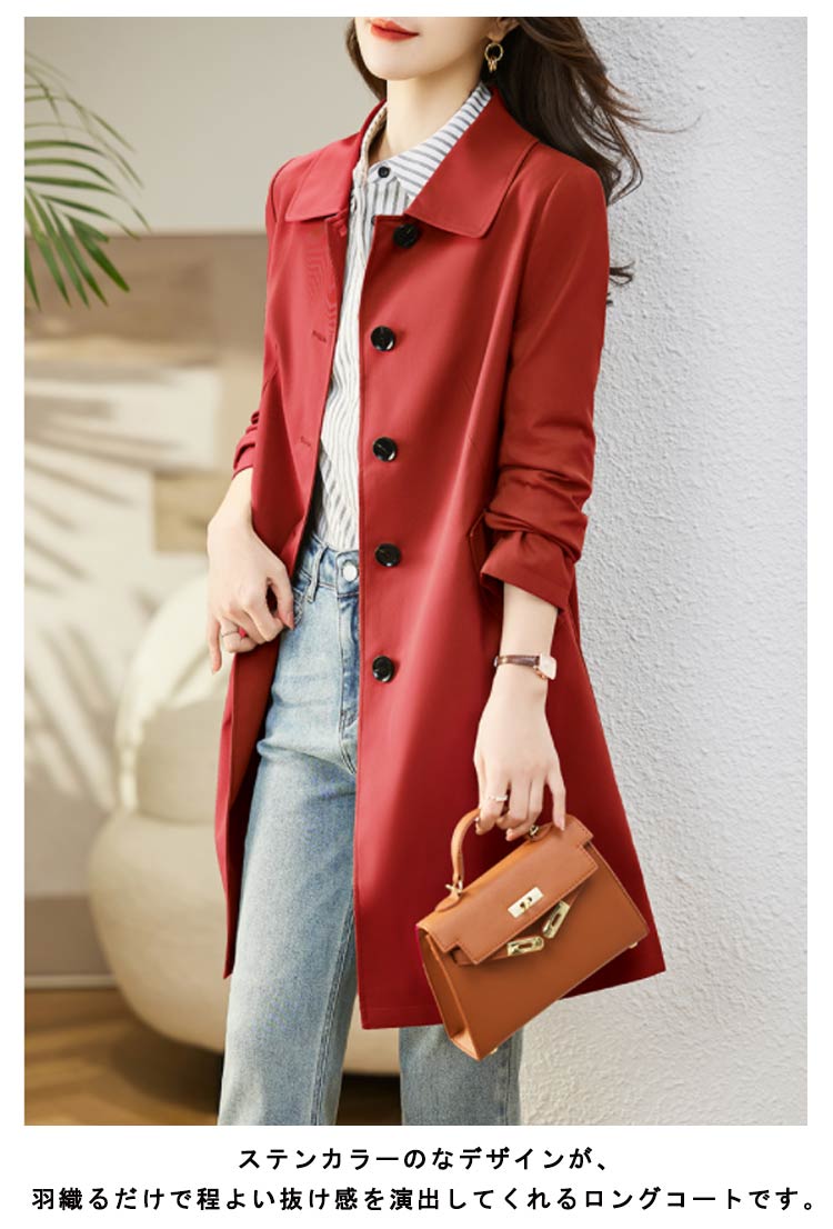 ステンカラーコート レディース トレンチコート ロング丈 春 秋 冬 ロングコート ビジネス コート 裏地付き 薄手 スリム きちんと 羽織り 大人 カジュアル 女性 通勤 通学 仕事 OL スプリングコート シンプル グリーン ネイビー 紺 ベージュ レッド 【送無】