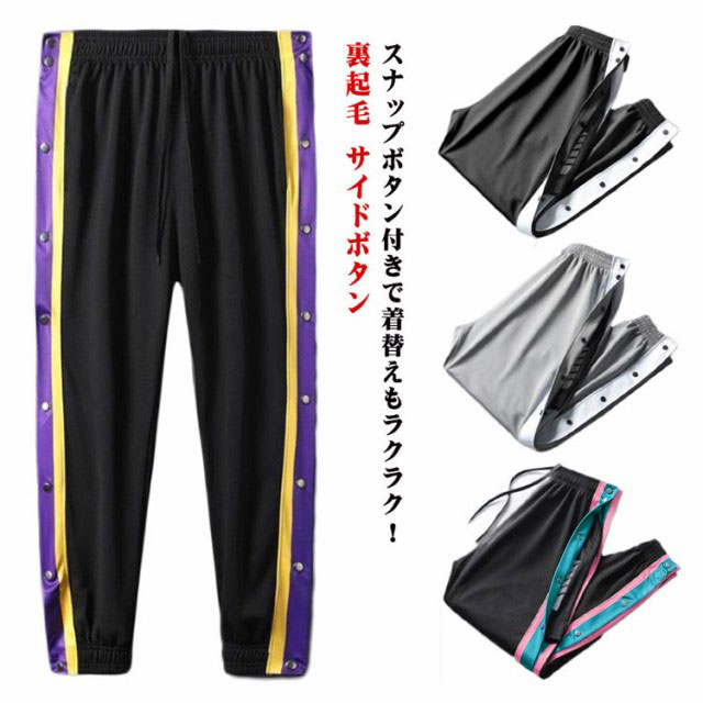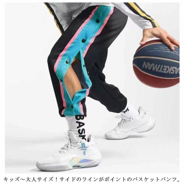 裏起毛 バスケットボールパンツ キッズ ジュニア 大人 メンズ レディース バスパン バスケパンツ バスケットパンツ スナップボタン 裾ボタン サイドボタン サイドライン 長ズボン ロングパンツ ジャージ 下 男の子 女の子 男性 女性