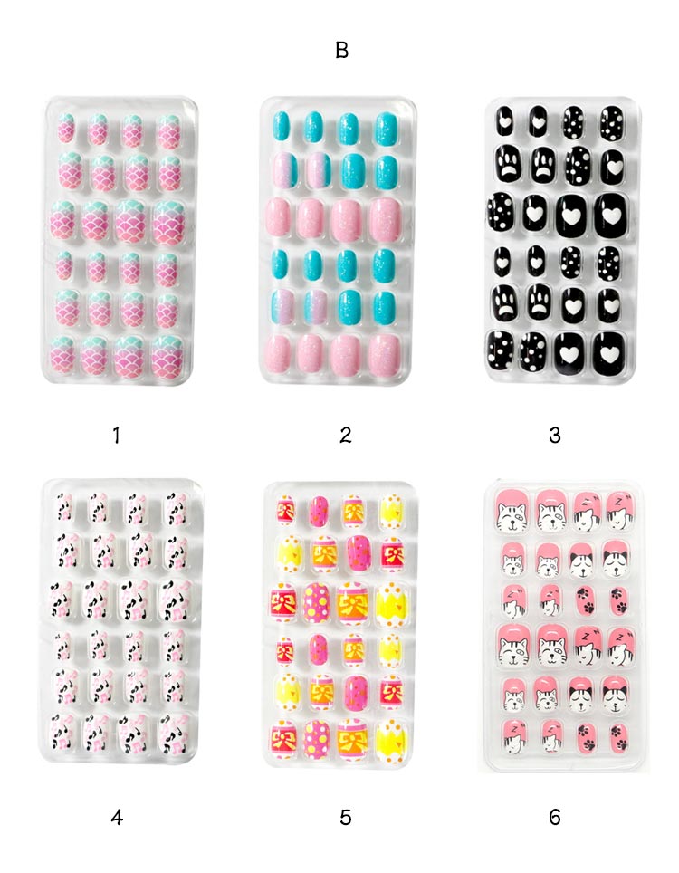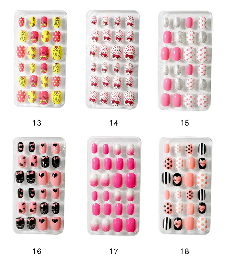 | 【商品名】子供用ネイルチップ 【セット内容】24枚入り 【素材】プラスチック 【特徴】 子供の爪のサイズを研究して作られたチップが24枚入り。 子供と一緒に楽しいネイル遊びをしてください。 特別な日のネイルに最適のネイルチップ。 自爪につけるだけで指先のオシャレが簡単に! | |