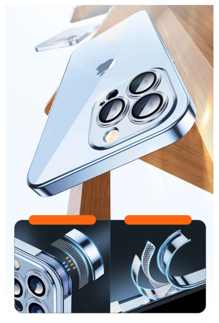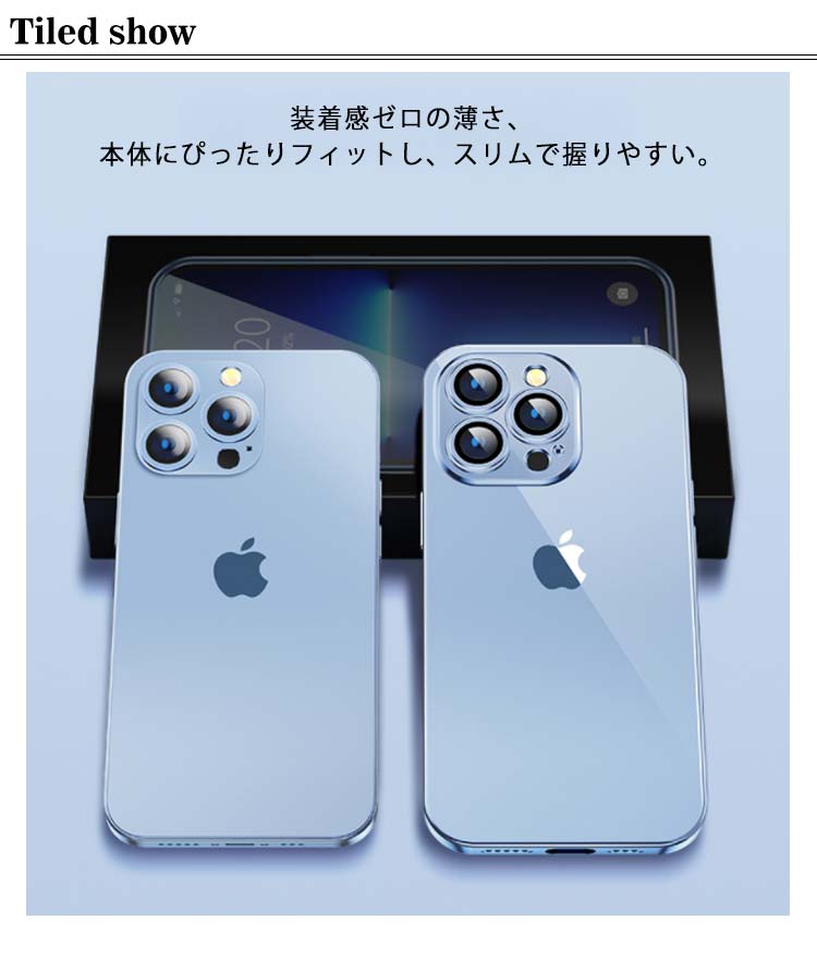 レンズフィルム一体型設計、これ1つでiPhone本体とカメラ部分をしっかり守ってくれるスマホケース。上品で飽きのこないシンプルなデザイン、メッキ加工とクリアバックで、iphone本来の美しさをより一層演出し、「大人かっこいい」を実現。装着感ゼロの薄さ、本体にぴったりフィットし、スリムで握りやすい。カメラレンズまでフルカバー、カメラレンズを傷からしっかりと全面保護。前面フレーム部分は画面よりもやや高め設計され画面を下にして置いてもスクリーンが擦れず安心。