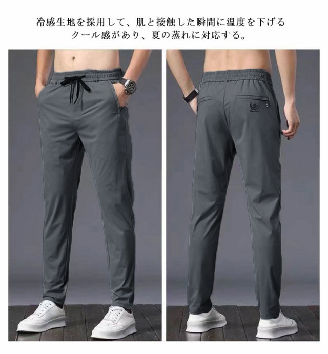冷感パンツ メンズ アイスシルクパンツ アイスシルクズボン 接触冷感 パンツ ひんやり 涼しい ゴルフパンツ ロングパンツ ストレッチ 伸縮 大きいサイズ カジュアル イージーパンツ 薄手 通気 uvカット スポーツウェア 速乾 軽量 夏 送料無料