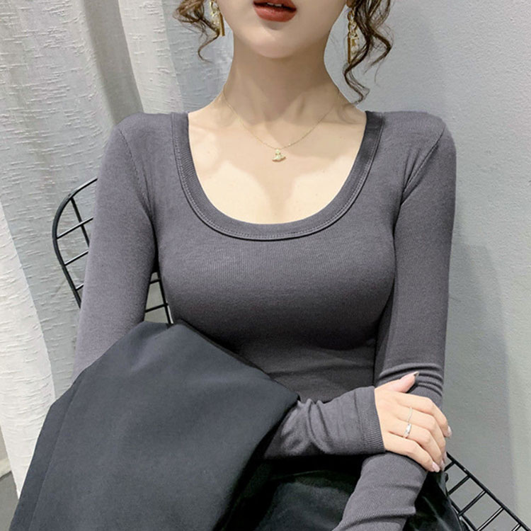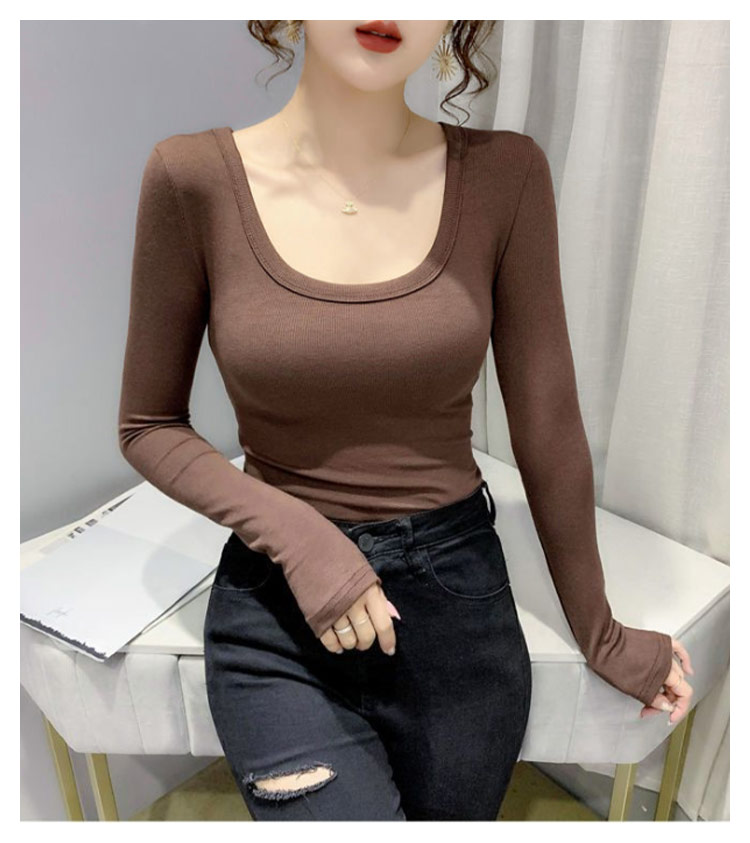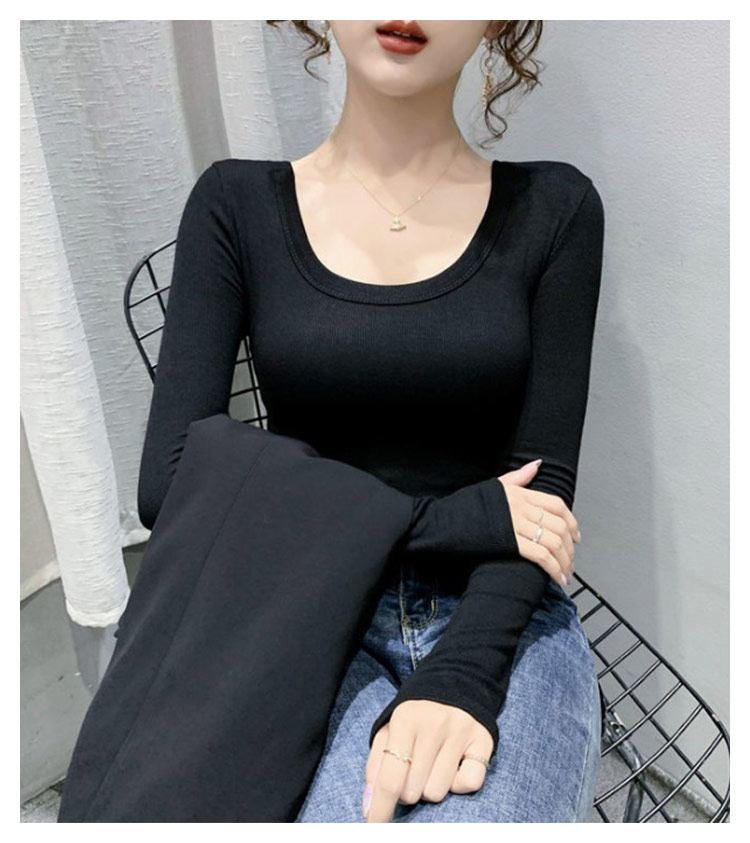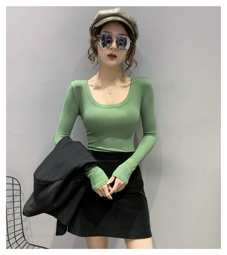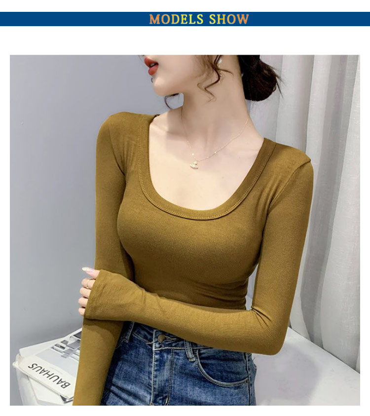 全12色×5サイズ! リブ tシャツ 長袖 Uネック リブトップス インナー トップス 長袖tシャツ クルーネック タイト トップス リブニット ニット リブ 韓国風 レディース 無地 春服 秋服 春秋 送料無料