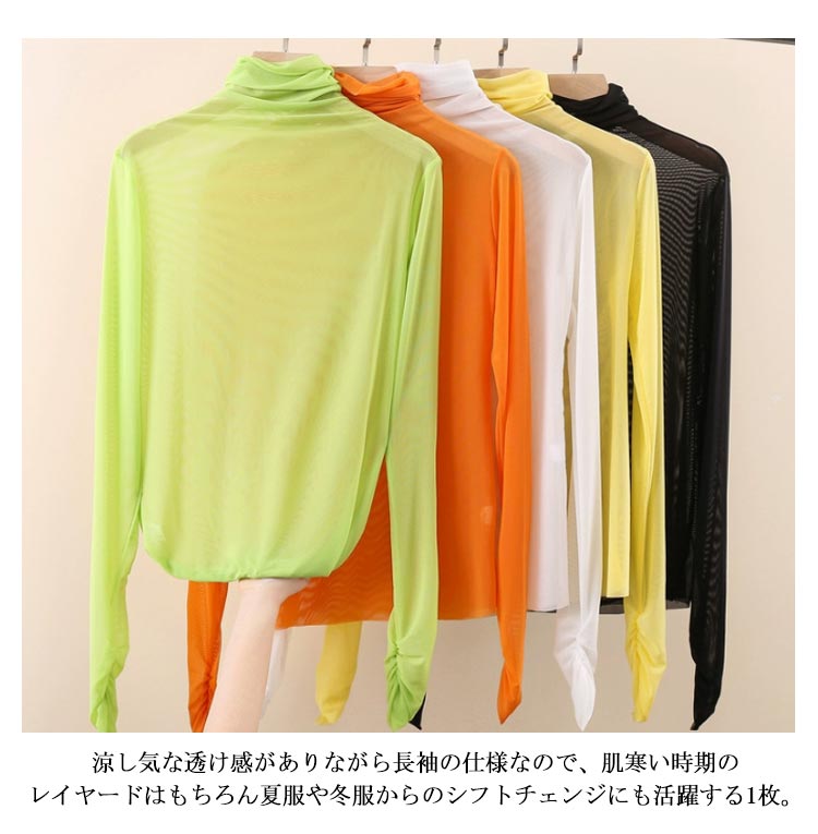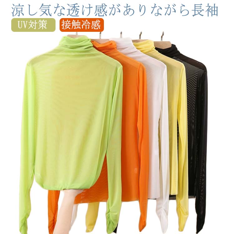 tシャツ シアートップス 長袖 薄手 シアー トップス ハイネック レディース ストレッチ UV対策 紫外線対策 接触冷感 クール冷感 シースルー ゆったり 透け感 レイヤード コーデ 重ね着 セクシー 肌見せ きれいめ 20代 30代 40代 50代 春 夏 秋 冬 カジュアル 送料無料