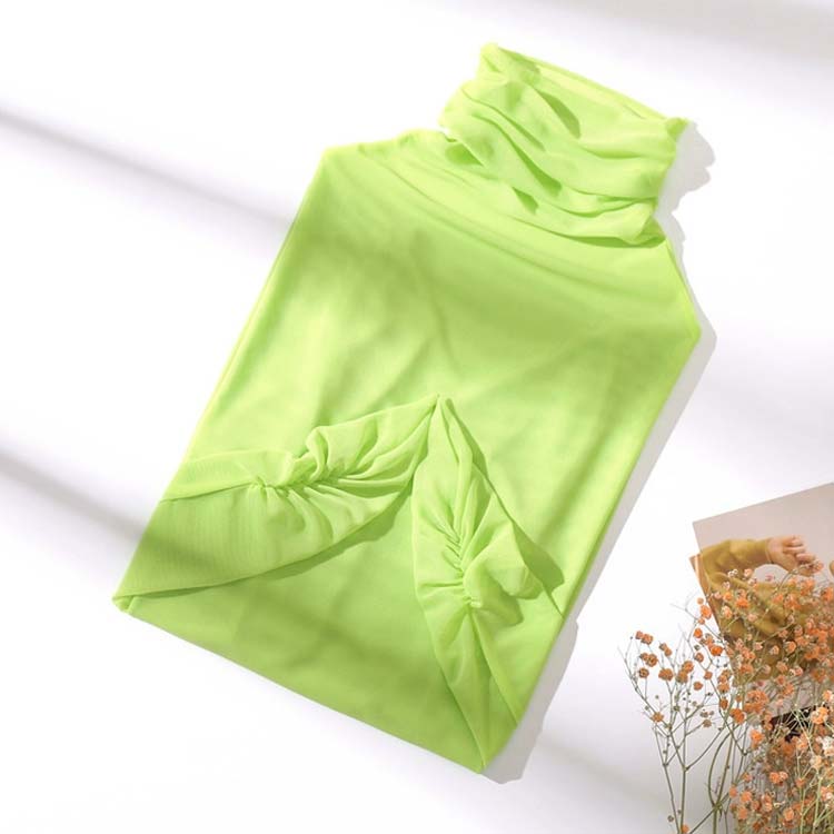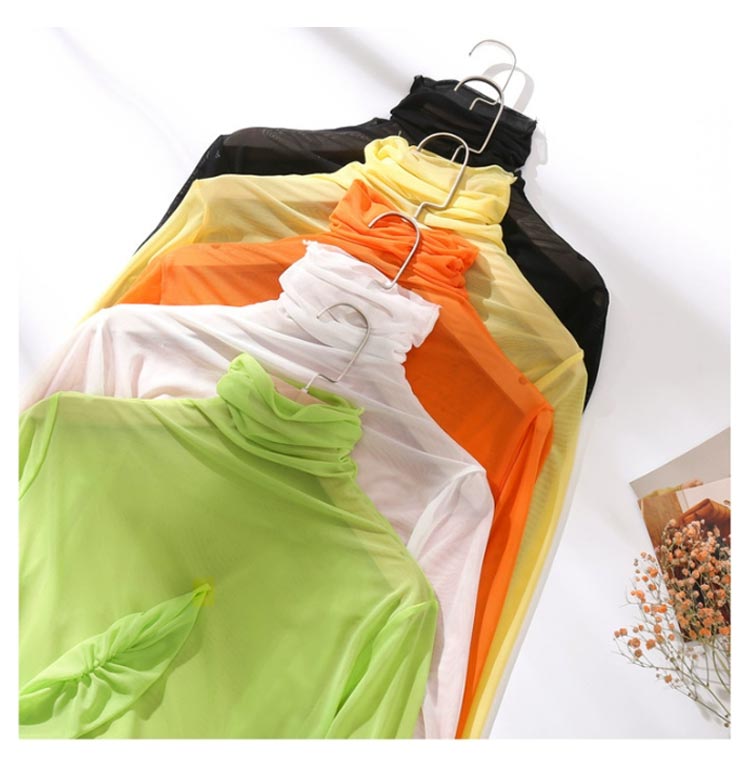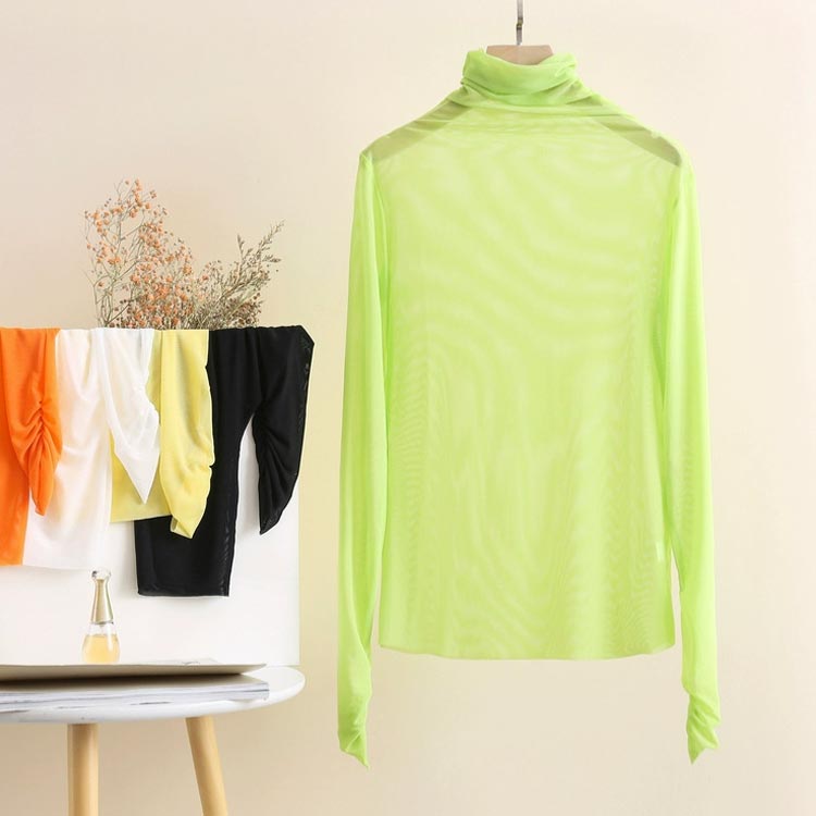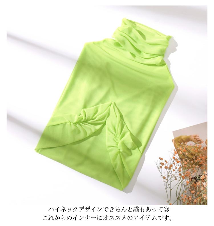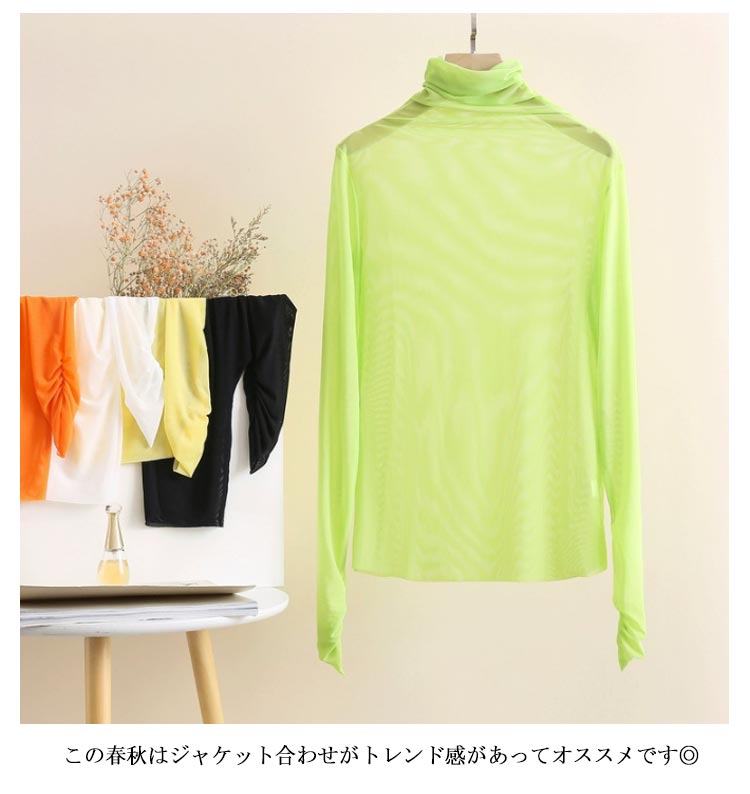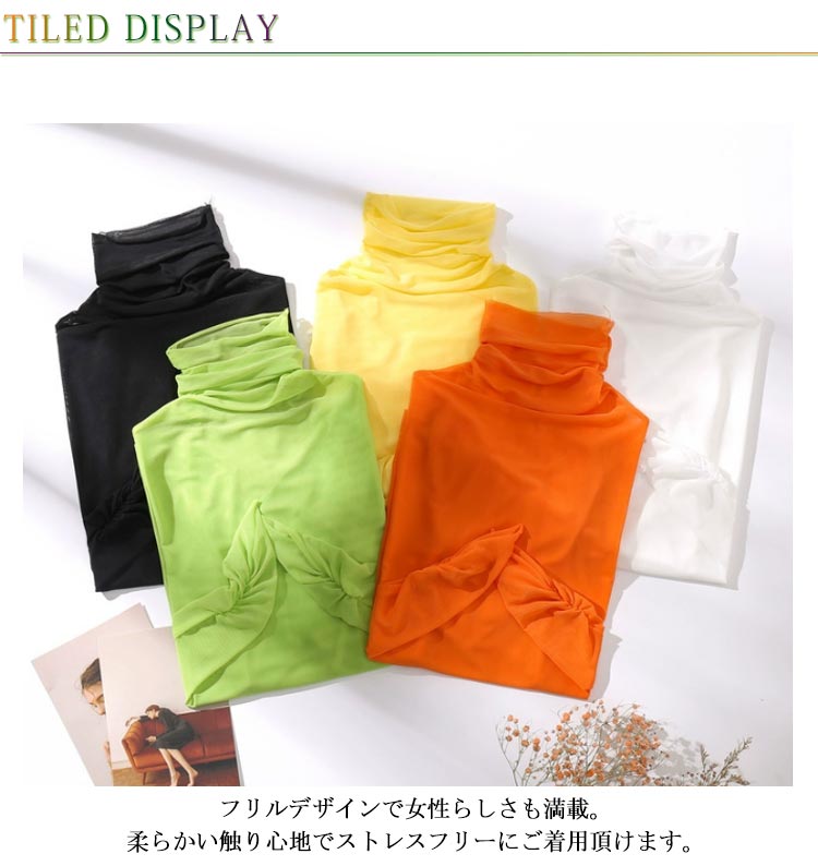 涼し気な透け感がありながら長袖フリルデザインで女性らしさも満載。柔らかい触り心地でストレスフリーにご着用頂けます。涼し気な透け感がありながら長袖の仕様なので、肌寒い時期のレイヤードはもちろん夏服や冬服からのシフトチェンジにも活躍する1枚。ハイネックデザインできちんと感もあって◎これからのインナーにオススメのアイテムです。この春秋はジャケット合わせがトレンド感があってオススメです◎