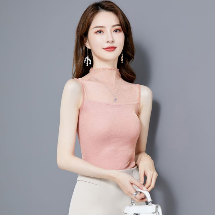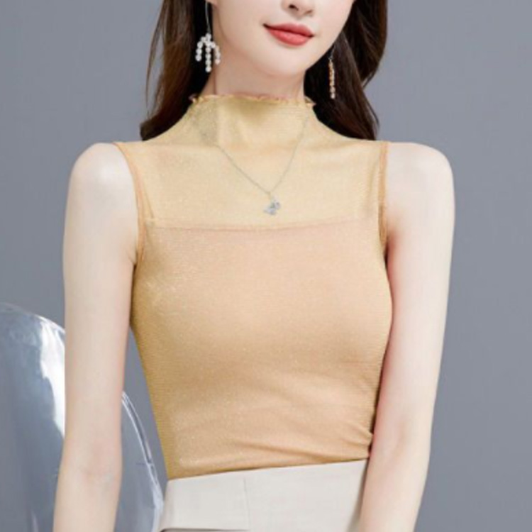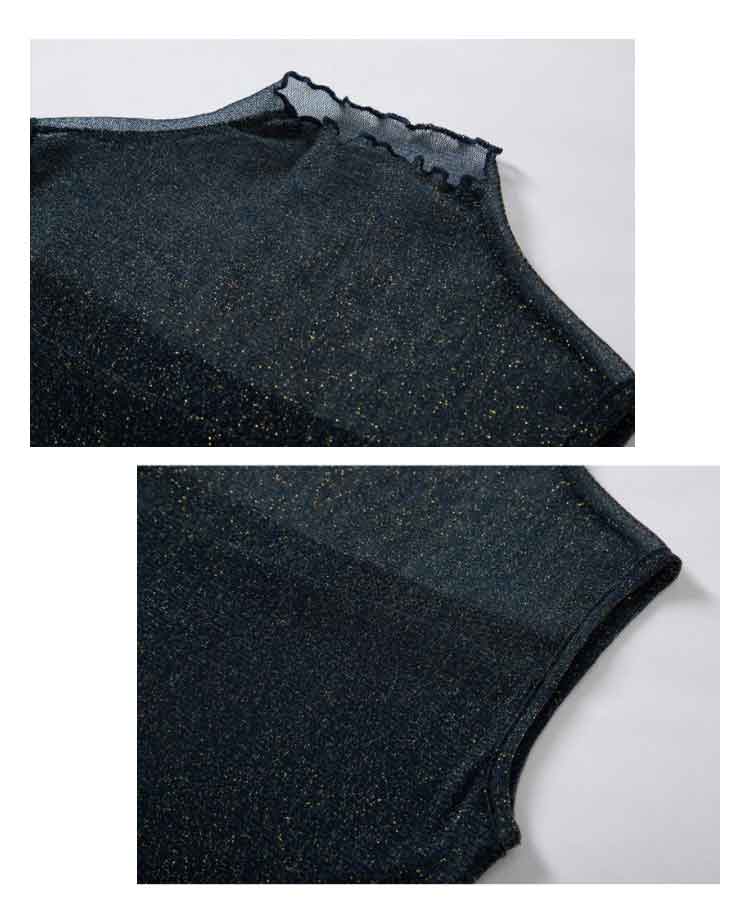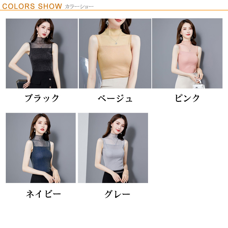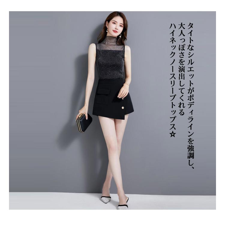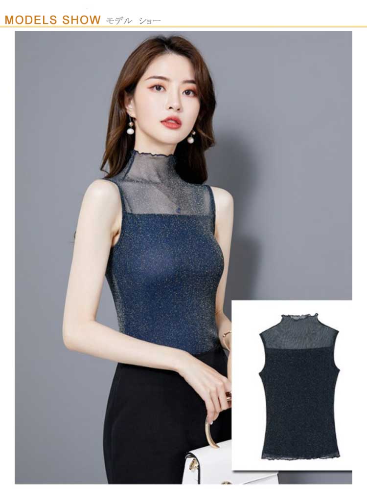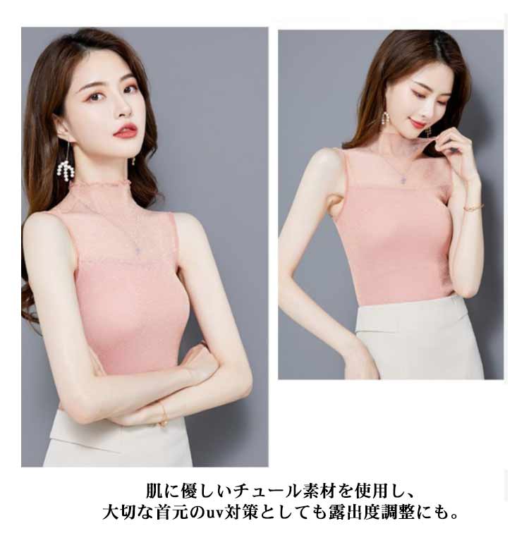 UVカット ハイネック ノースリーブ 薄手 タートルネック ラメ入り キラキラ インナー ハイネックtシャツ 透け感 タンクトップ レディース カットソー シアートップス レース 春 夏 首 無地 紫外線対策 大きいサイズ 送料無料