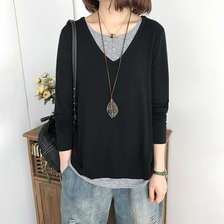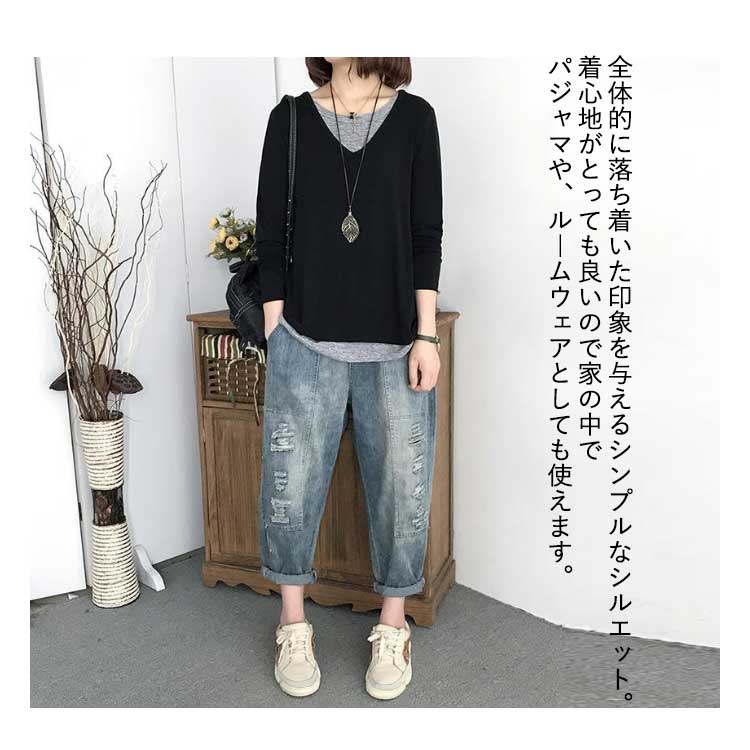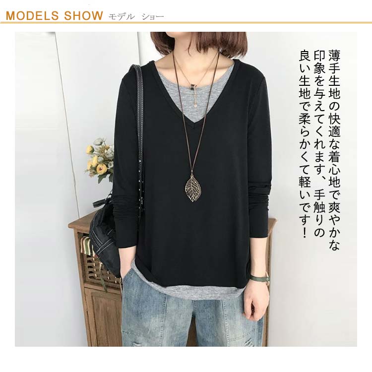重ね着風tシャツ レディース 長袖 春 tシャツ 送料無料 レイヤード 春夏 トップス vネック チュニック 大きいサイズ ゆったり ロング丈 オーバーサイズ カジュアル おしゃれ 大人可愛い シンプル 切り替え 体型カバー 春服 春物 夏服 夏物 秋