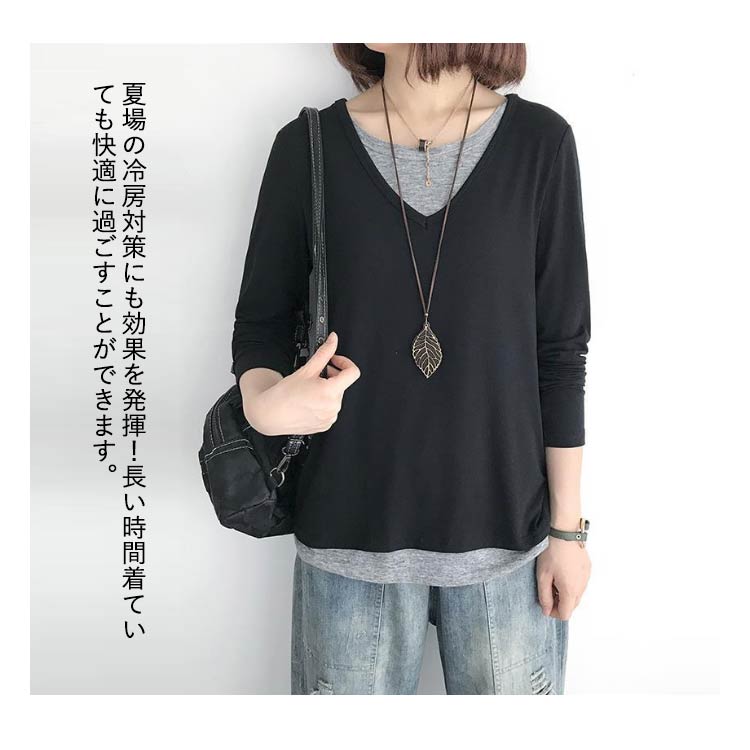レイヤードにぴったりの重ね着風の長袖tシャツです。薄手生地の快適な着心地で爽やかな印象を与えてくれます、手触りの良い生地で柔らかくて軽いです!夏場の冷房対策にも効果を発揮!長い時間着ていても快適に過ごすことができます。レイヤードデザインのトップスなのでコーデを考えずにさっと普段使いOK。全体的に落ち着いた印象を与えるシンプルなシルエット。着心地がとっても良いので家の中でパジャマや、ルームウェアとしても使えます。用途が幅広いので恋人や家族へのプレゼントしても喜ばれます。
