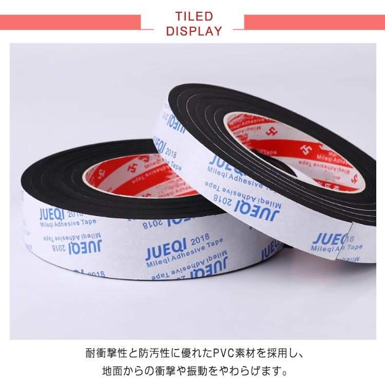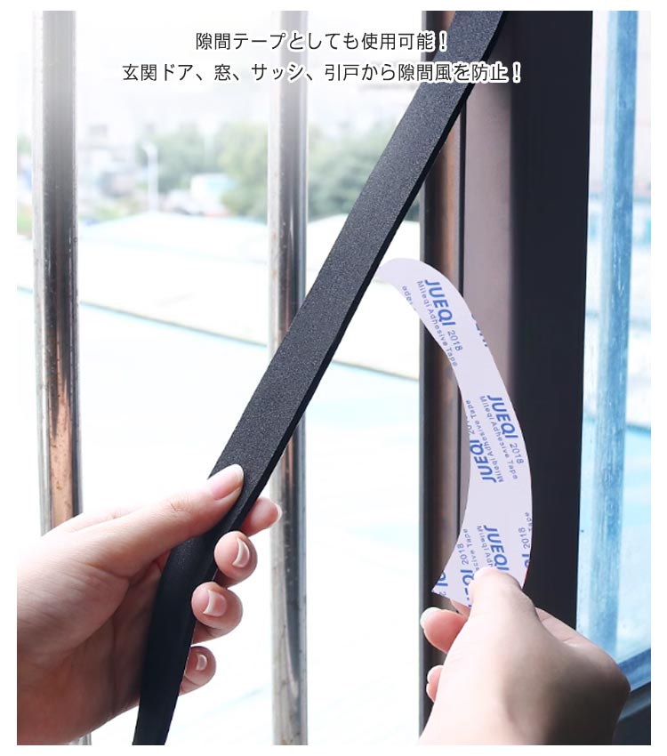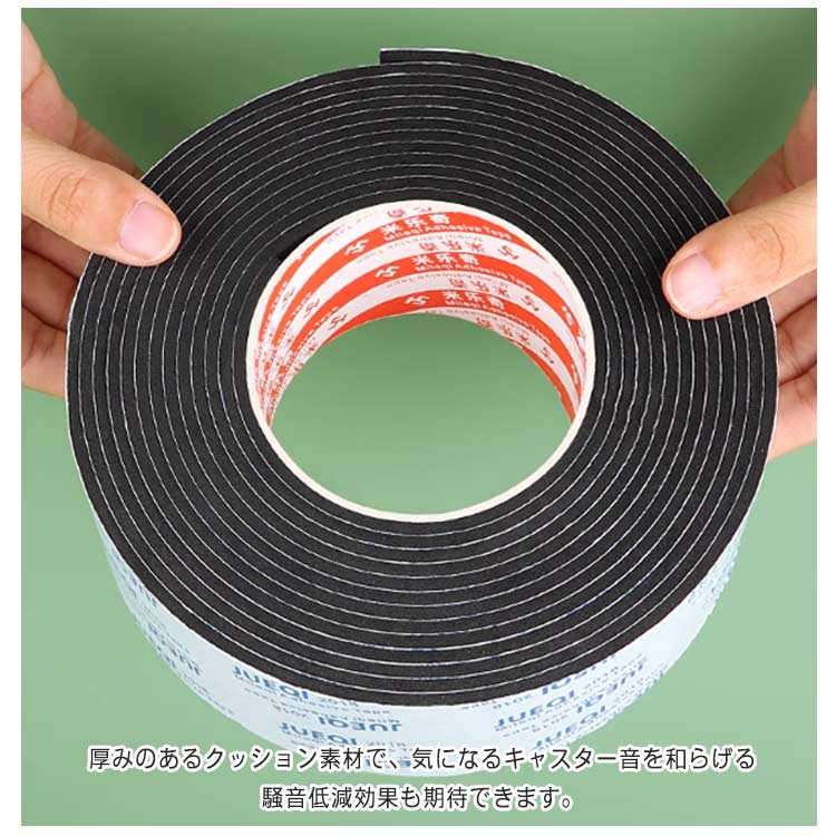 | 貼るだけでキャスターを傷や汚れから守ります! ハサミで簡単にカットできるので、貼り付けも簡単!! 耐衝撃性と防汚性に優れたPVC素材を採用し、地面からの衝撃や振動をやわらげます。 厚みのあるクッション素材で、気になるキャスター音を和らげる騒音低減効果も期待できます。 隙間テープとしても使用可能!玄関ドア、窓、サッシ、引戸から隙間風を防止! | |