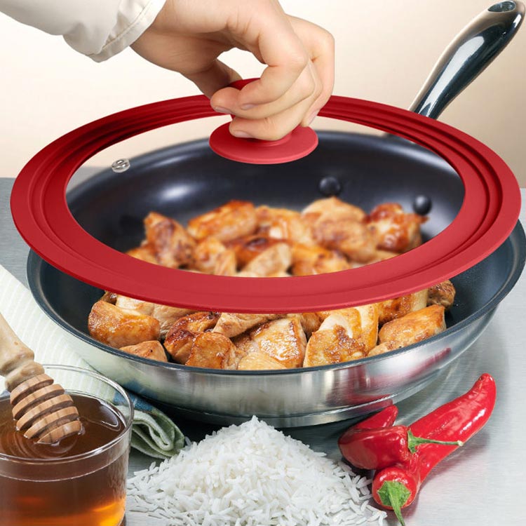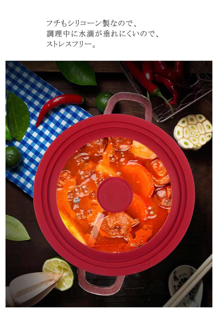 ガラス蓋 シリコーン 鍋蓋 シリコーンリッド ふた フタ 耐熱 鍋 フライパン 蓋 キッチン用品 フライパンカバー 軽い 洗いやすい 透明 ポット ガラス蓋 パンカバー 片手鍋 蓋 18・20・22cm用 26・28・30cm用 28・30・32cm用 調理用品 調理器具 油ハネ防止
