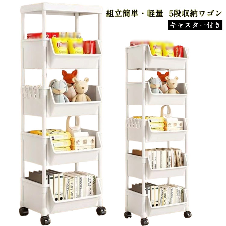 キッチンワゴン 5段 マルチワゴン キャスター付き 収納ワゴン 収納棚 収納ラック 本棚 おしゃれ キッチン収納 バスケットトローリー ワゴン 北欧 インテリア 韓国 工具不要 組立簡単 収納カート スリム 隙間収納 洗面所 台所