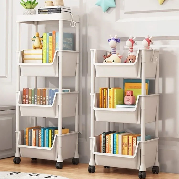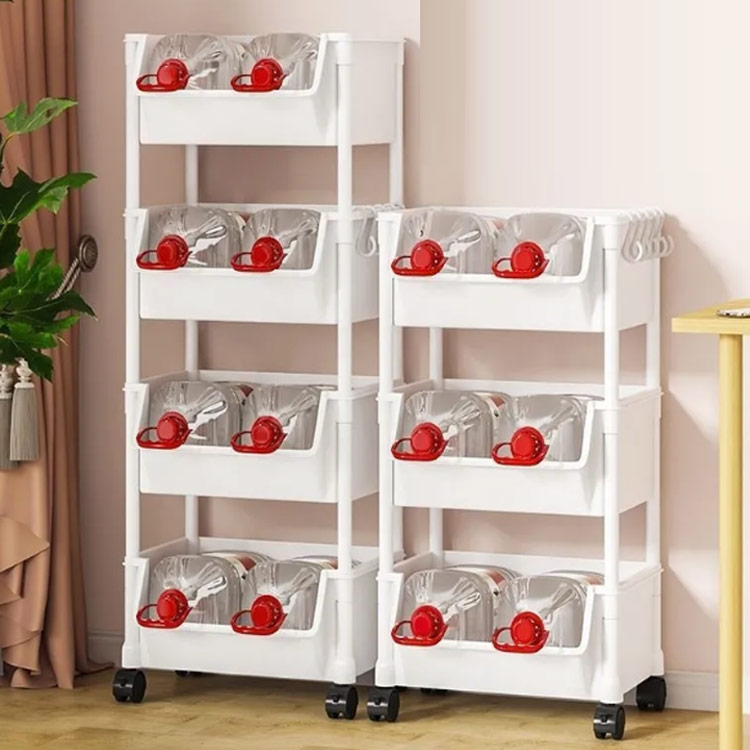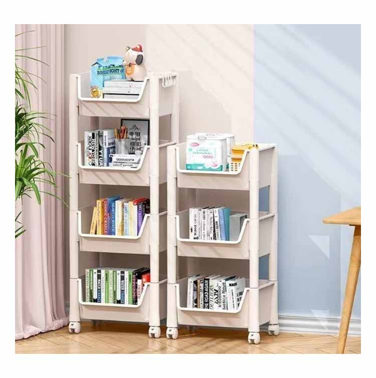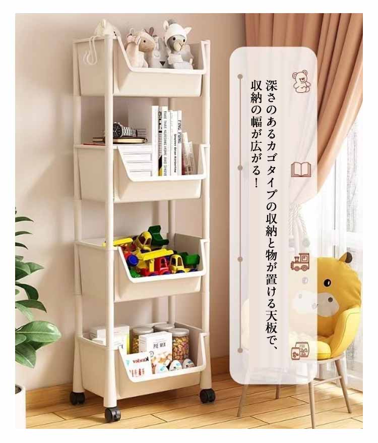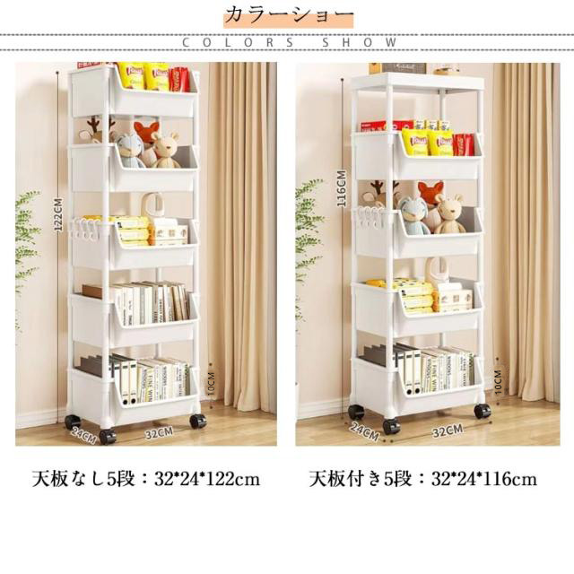 | 【5段収納ワゴン】【組立簡単?軽量】【キャスター付き】 持ち運び簡単!どこでも使えるオシャレなマルチワゴン。 プラスチック製なので、洗面所やキッチンなど水回りでも活躍。 キャスター付だがら移動も楽々。 深さのあるカゴタイプの収納と物が置ける天板で、収納の幅が広がる! カゴとカゴの間も高さがあるので、背の高いものもOK! A4サイズもすっぽり入るサイズです。 キッチン、ダイニング、リビング、洗面所、子供部屋などに… なんでも収納片付けに便利な優秀ワゴン。 4脚中2脚はストッパー付き!押すだけ固定できる。 | |