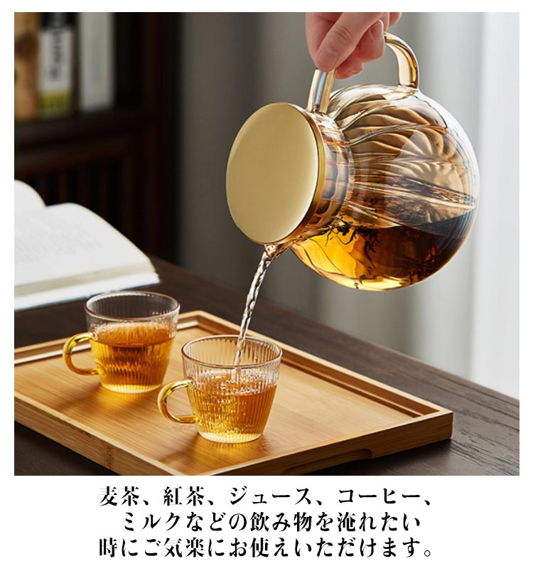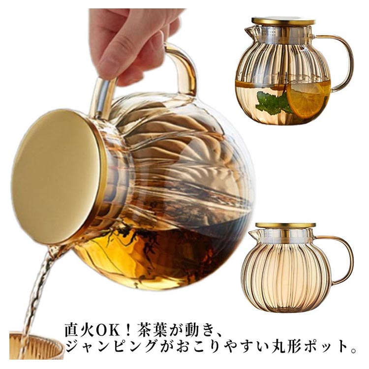 ティーポット 耐熱ガラス 直火OK 丸形 ガラスポット 茶こし付き ガラス急須 お茶 紅茶 ハーブティー 緑茶 ポット ジャンピング ステンレス ガラス 耐熱 食洗機対応 電子レンジ可 シンプル お手入れ簡単 おしゃれ 北欧 ギフト