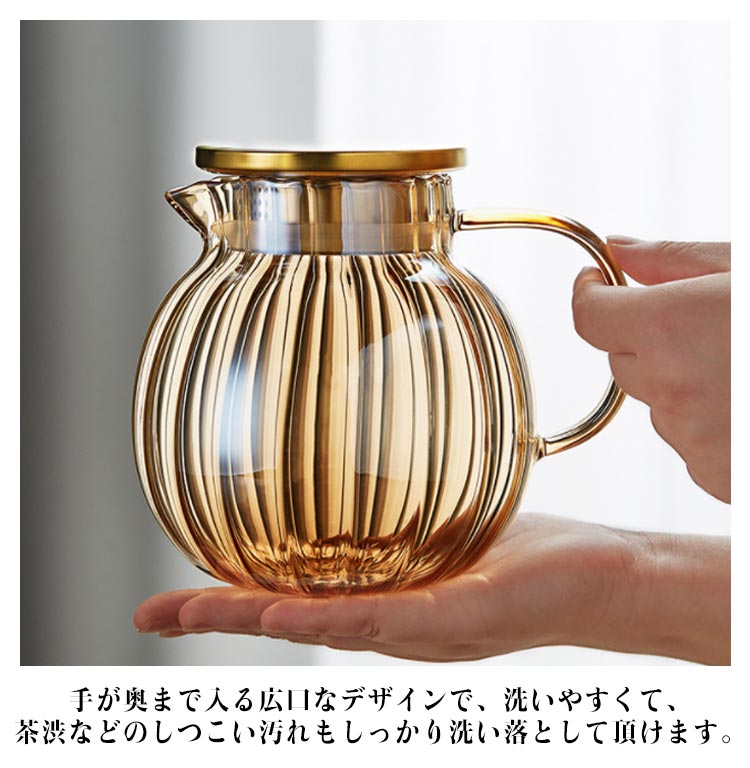 | 直火OK!茶葉が動き、ジャンピングがおこりやすい丸形ポット。 注ぎ口に茶こしが付いてるので、しっかり茶葉が広がります。 耐熱ガラス製なので、直火にも対応可能。 手が奥まで入る広口なデザインで、洗いやすくて、茶渋などのしつこい汚れもしっかり洗い落として頂けます。 麦茶、紅茶、ジュース、コーヒー、ミルクなどの飲み物を淹れたい時にご気楽にお使えいただけます。 | |