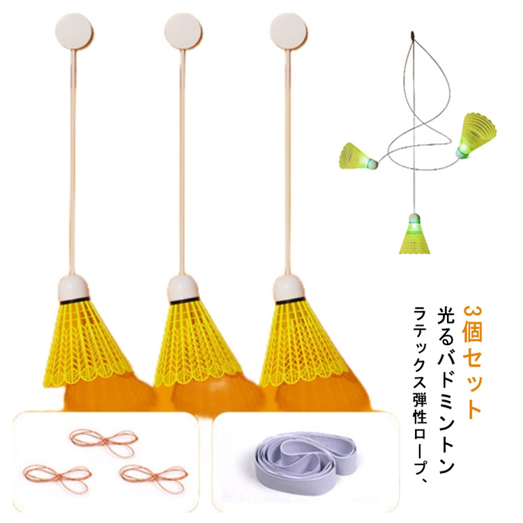 バドミントン 3個セット 室内 バドミントントレーナー フック付き バランスライン付き 弾性ロープ付き 光るバドミントン 室内バトミントン 自動リターン セルフ トレーニング バドミント ンシングル プレーヤー 練習用 送料無料