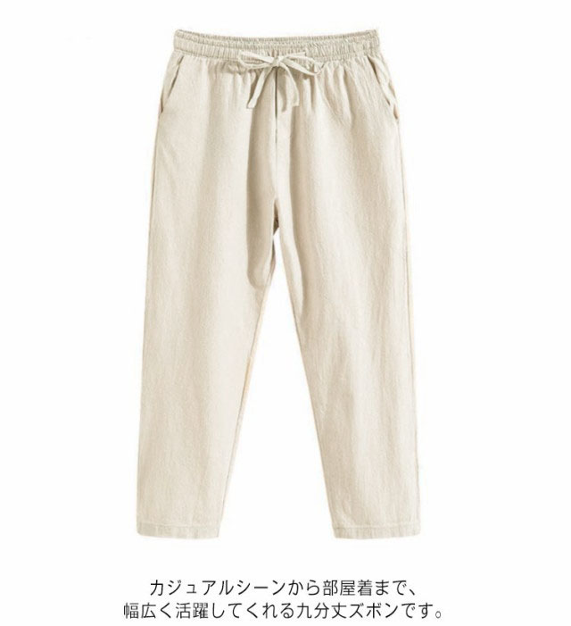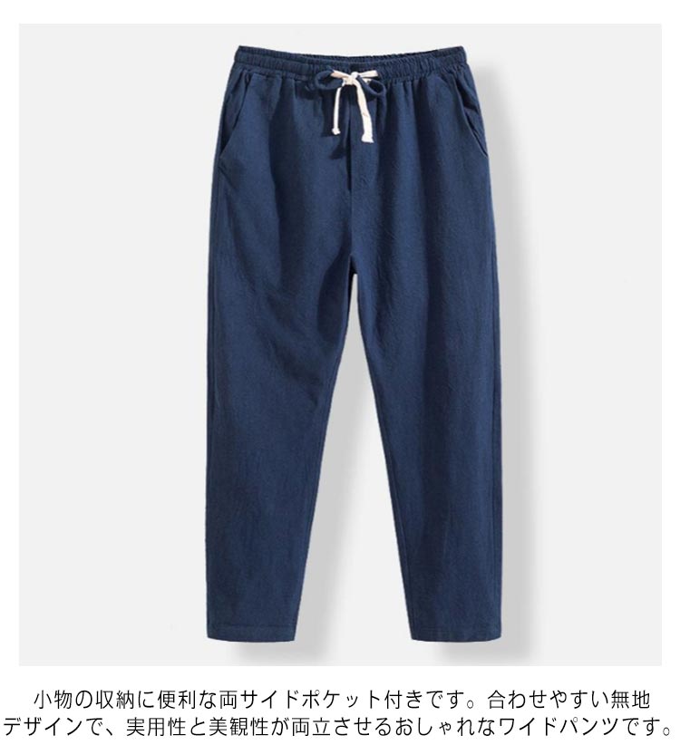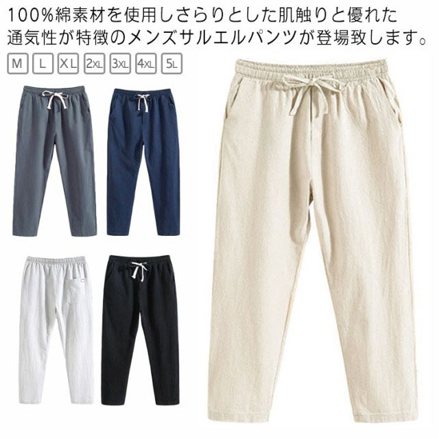 綿麻パンツ 9分丈 メンズ ボトムス サルエルパンツ 綿麻 パンツ 麻パン テーパードパンツ イージーパンツ ロングパンツ リラックス ウェア 麻 コットン ゆったり 春夏 ワイドパンツ