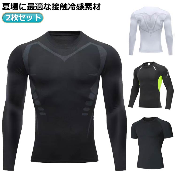 【2枚セット】長袖インナーウェア 夏用 接触冷感 吸汗速乾 消臭 抗菌 長袖インナーウェア 夏 メンズ アンダーシャツ ストレッチ 春夏 作業服 作業着 スポーツ 送料無料