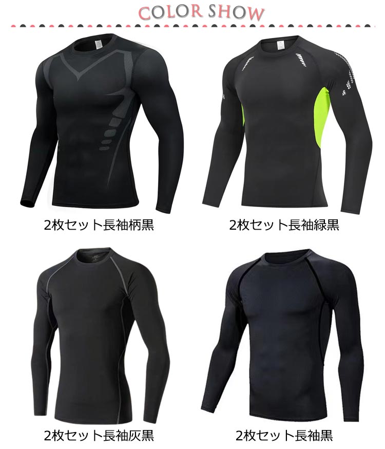 | 色 | 2枚セット長袖柄黒 2枚セット長袖緑黒 2枚セット長袖灰黒 2枚セット長袖黒 2枚セット半袖柄黒 2枚セット半袖緑黒 2枚セット半袖灰黒 2枚セット半袖黒 2枚セット長袖柄白 2枚セット長袖白 2枚セット半袖柄白 |