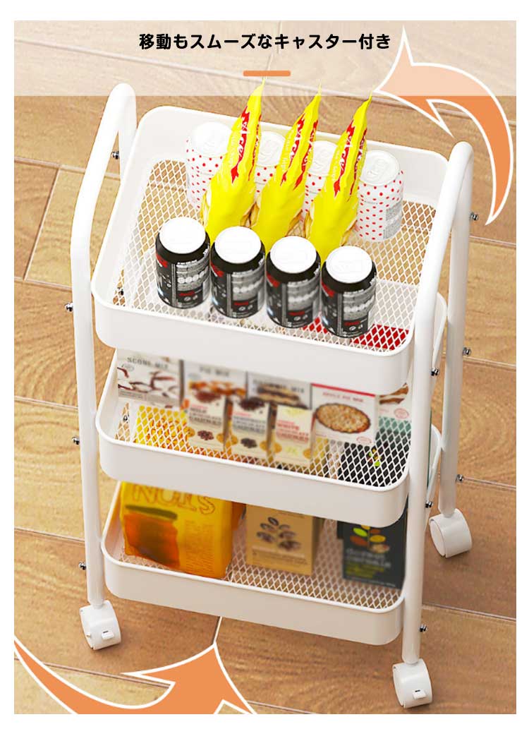 | 頑丈なスチール製で変形しにくく、しっかり支えるので安心 キッチンのすき間スペースなども有効的に活用できます 移動もスムーズなキャスター付き | |