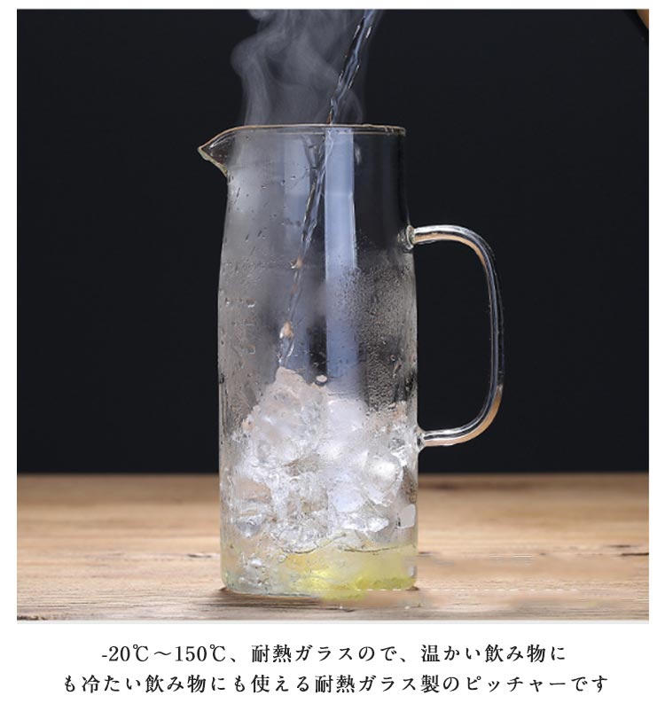 | 耐熱のホウケイ酸ガラスで作られて、ビーカーと同じ材質で、直火可能なガラスポットです 麦茶、紅茶、ジュース、コーヒー、ミルクなどの飲み物を淹れたい時にご気楽にお使えいただけます。 -20℃~150℃、耐熱ガラスので、温かい飲み物にも冷たい飲み物にも使える耐熱ガラス製のピッチャーです ボトルの口径が大きく、手が直接差し込めて清潔できます | |