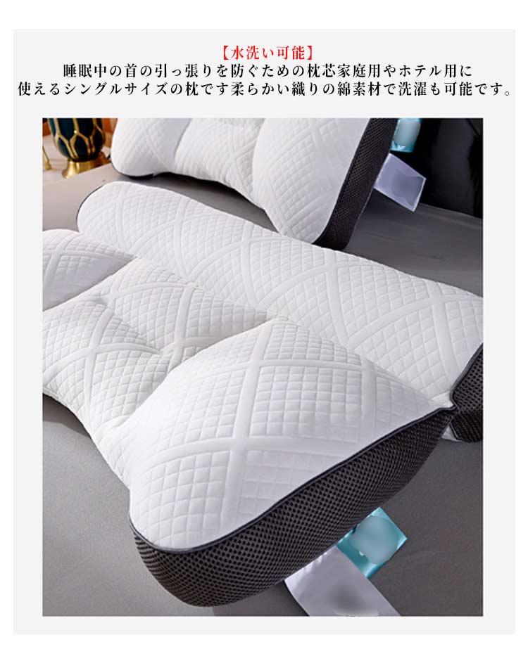 超快適ハイテク頚椎牽引ケア枕。人間工学 どんな眠りの姿を満たせる!3つの支えるエリアで、首と頭をしっかり支えて、どんな姿でも快適な眠りを楽しめる。【首のサポート】眠りのための首のサポートに適な分割式枕芯家庭用やホテル用におすすめの成人用枕です洗濯可能な編み物の綿で作られています。【丸洗いができて清潔、やさしい肌触り】すべて丸洗いができるので、ニオイや汚れなどの心配がなく、いつも清潔に保つことができます。【水洗い可能】睡眠中の首の引っ張りを防ぐための枕芯家庭用やホテル用に使えるシングルサイズの枕です柔らかい織りの綿素材で洗濯も可能です。【安眠枕】フィット感を追求し理想の固さを実現し、リラックスさせるウレタン素材を採用。体圧分散力が高く、負荷を均一にしてくれます。ゆっくり頭の形に沿って沈み込み、包み込むようにやさしくフィットしていきます。独自の立体形状と快眠素材でどんな寝姿勢でも首・肩に負担をかけずに自然な首のカーブを支える。【ギフトに適】誕生日、クリスマスプレゼントとしておすすめします。ほかには、ご結婚/ご出産/お引っ越し/ご入学/ご就職/ご新築/リフォーム/お中元/お歳暮/父の日/母の日/敬老の日などのお祝い・贈り物(ギフト)にも適応です。